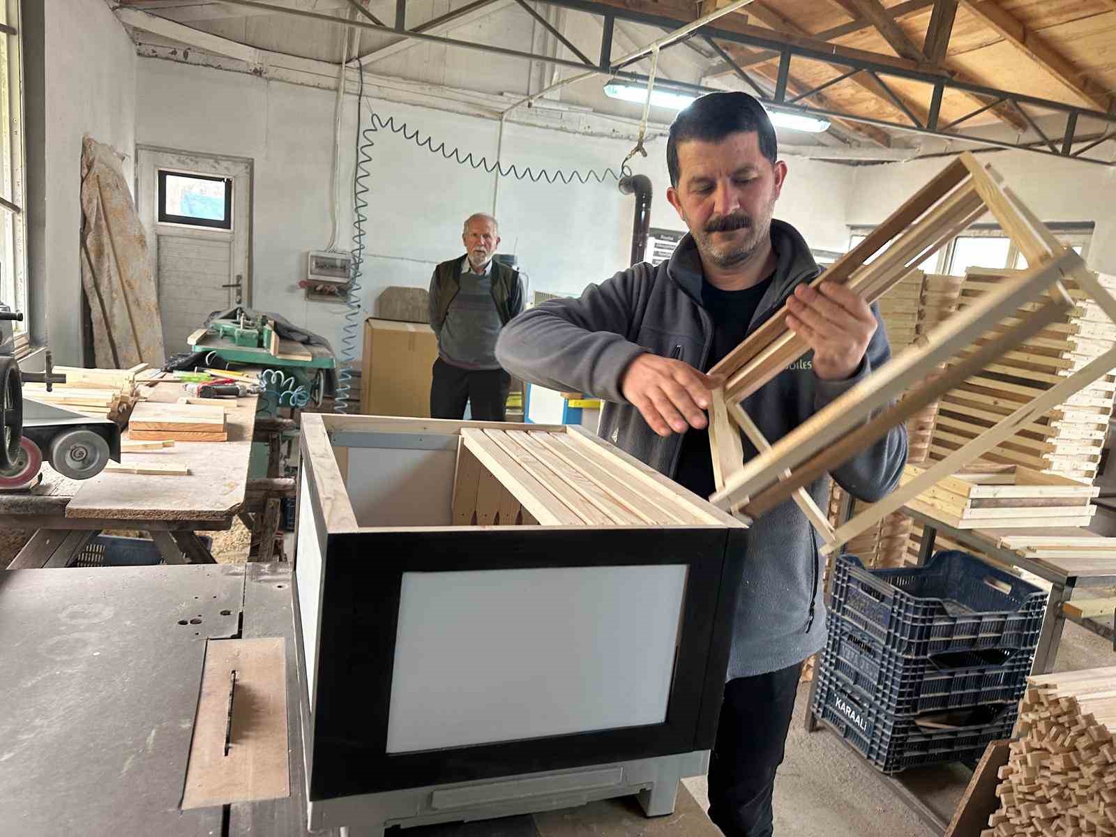 Bursa’nın İnegöl ilçesinde arıcılıkla uğraşan Hayri Soylu, arıcılardan gelen talep üzerine sarı-kırmızı, sarı-lacivert, siyah-beyaz, yeşil-beyaz gibi renklerde ısı yalıtımlı kovan üretimi de yapıyor.