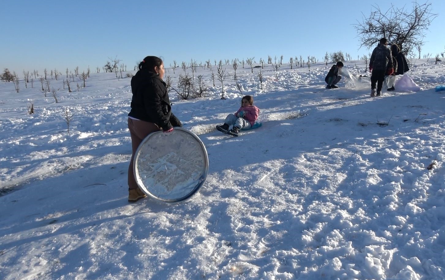 Kar yağışı sonrası mahalledeki engebeli boş araziyi kayak pistine çeviren çocuklar, doyasıya eğlendi. Kar yağışıyla beyaza bürünen tepe, hem çocukların hem de ailelerin eğlence noktası oldu. Tepede yoğunluk oluşturan, naylon, leğen ve tepsilerle kayan çocuklar, doyasıya eğlendi. Boş arazideki tepeyi kendi imkanlarıyla düzelterek kızak pistine çeviren çocuklar, naylon, tepsi ve leğenlerle kayarak keyifli anlar yaşadı.