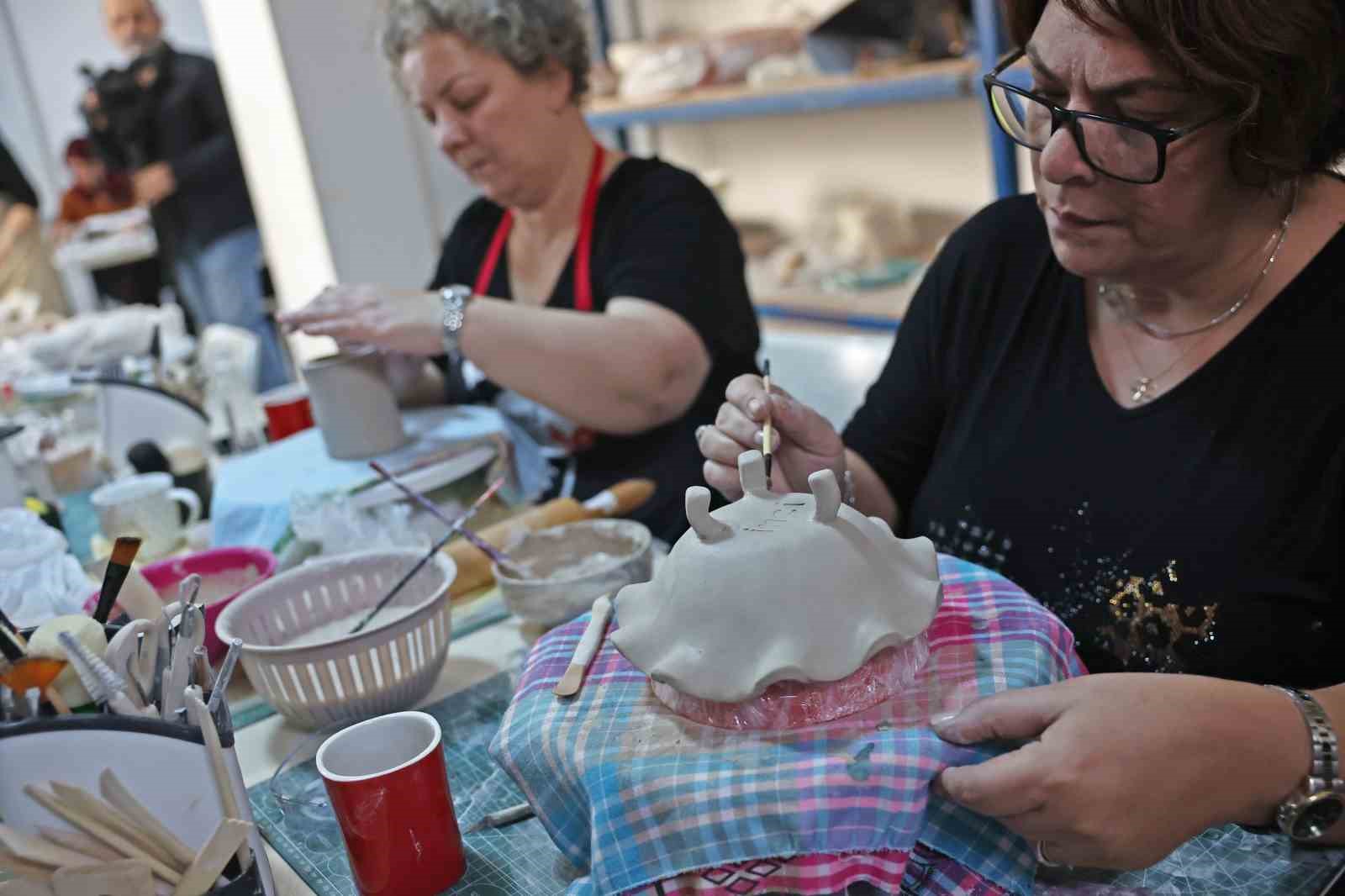 ATASEM bünyesinde açılan seramik biçimlendirme kursunda eğitim gören kursiyerler çamura adeta hayat vererek bir sanat eserine dönüştürüyor. El becerilerini geliştiren kursiyerler seramik yapmayı, ham çamuru şekillendirerek istedikleri objeleri yapabiliyorlar. Yapılan objeler pişiriliyor, boyanıyor, üzerine desen işleniyor.
