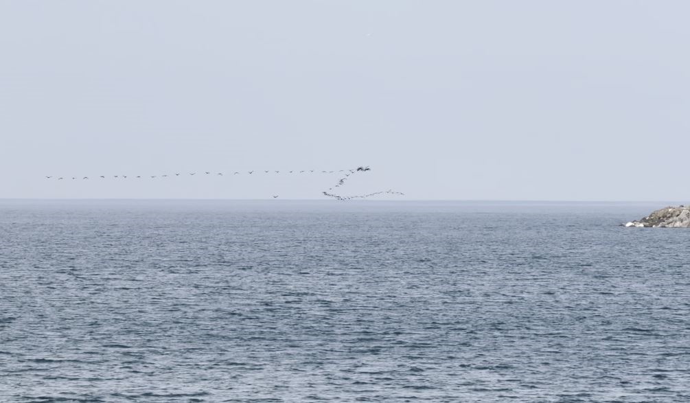 Artvin’in Hopa ilçesinde kaydedilen görüntüler, Karadeniz kıyı hattındaki göçmen kuş hareketliliğini bir kez daha görüntülendi. Göç yolculuğu sırasında göçmen kuşların sergilediği senkronize uçuş hareketleri, Hopa açıklarında deniz yüzeyine yakın şekilde görüntülendi.