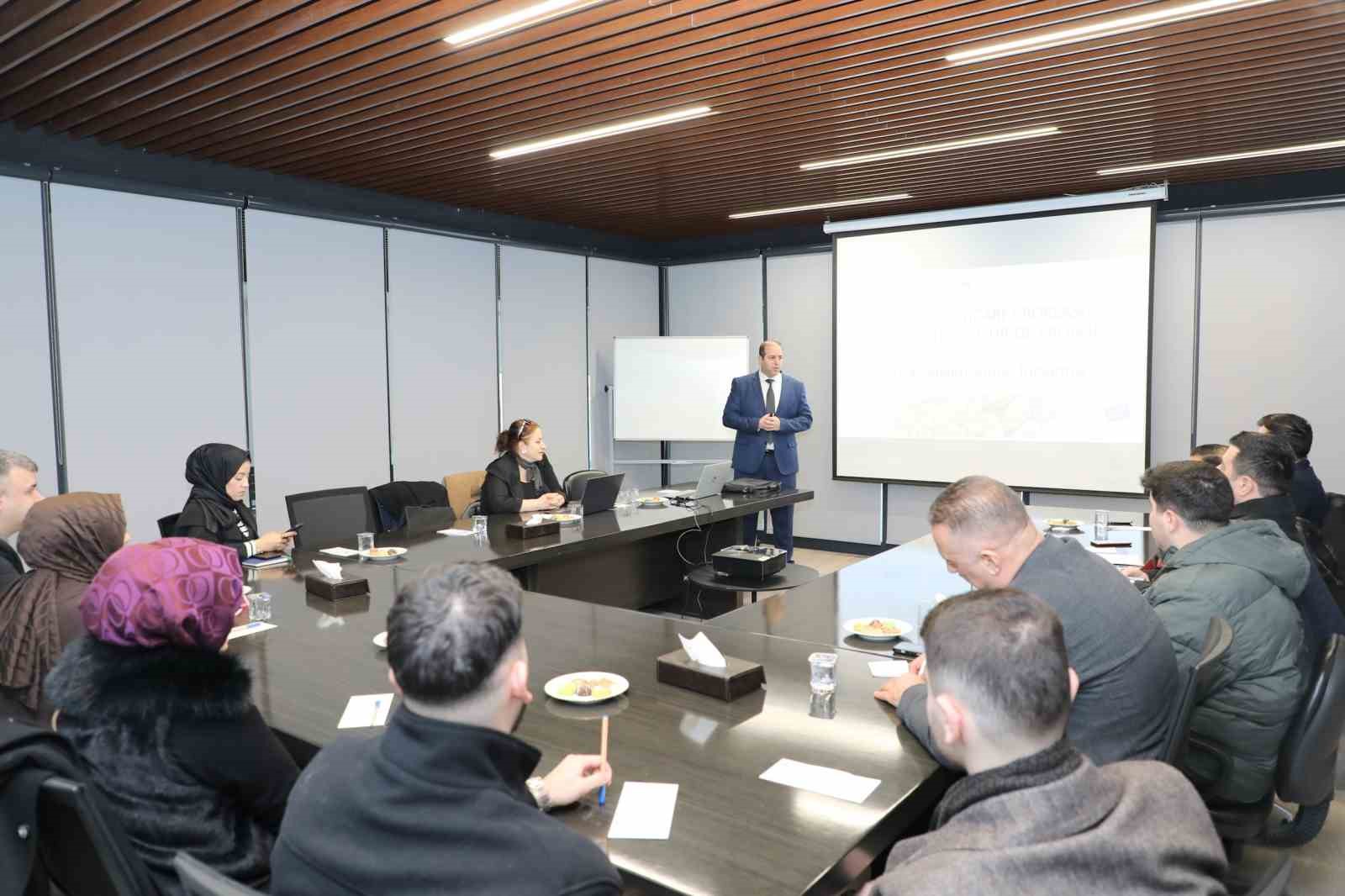 UR-GE Projesi kapsamında yer alan firmaların temsilcilerinin katılım sağladığı toplantıda firmaların mevcut yapıları, ihracat kapasiteleri, gelişim alanları ve hedef pazar analizleri kapsamlı şekilde ele alındı. Toplantının sunum bölümünde, 4K Yönetim Destek Merkezi yetkilileri tarafından UR-GE Projesi’nin temel bileşenleri, kümelenme yaklaşımının firmalara sağladığı rekabet avantajları, küresel gıda ticaretindeki güncel eğilimler ve sektörün orta-uzun vadeli görünümüne ilişkin değerlendirmeler paylaşıldı. Sunumda ayrıca, GTİP bazlı analizler doğrultusunda belirlenen öncelikli hedef pazarlar ile firmaların bu pazarlara erişimini kolaylaştıracak stratejik yol haritaları ele alındı.
