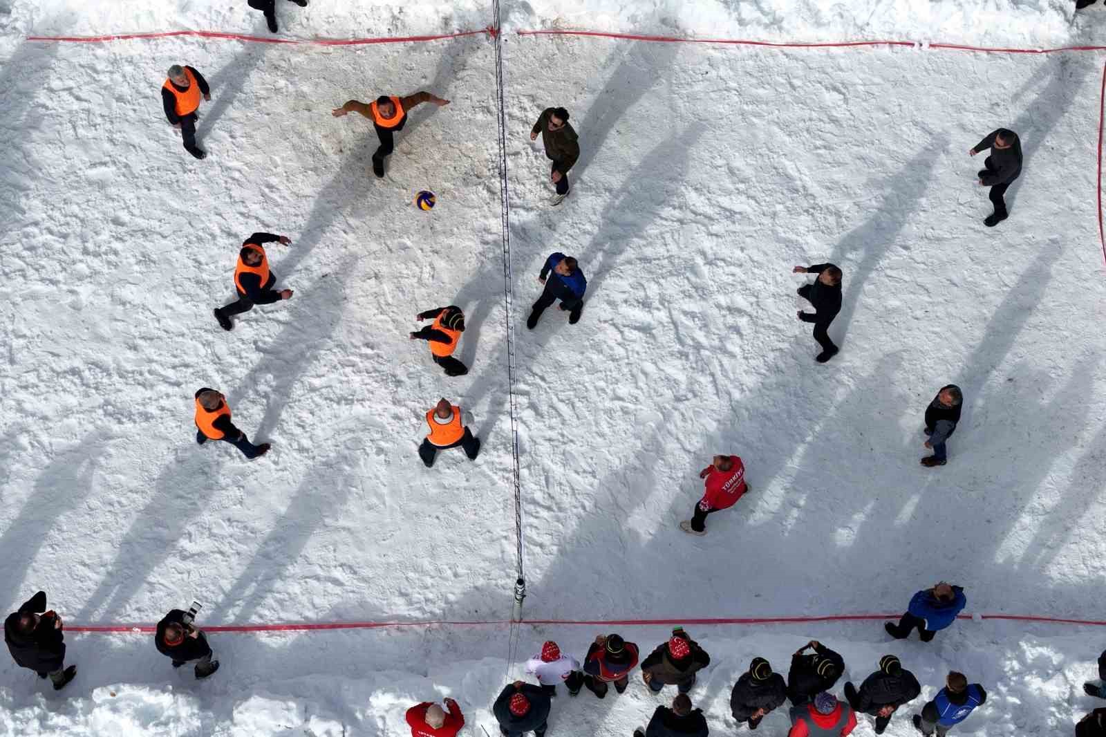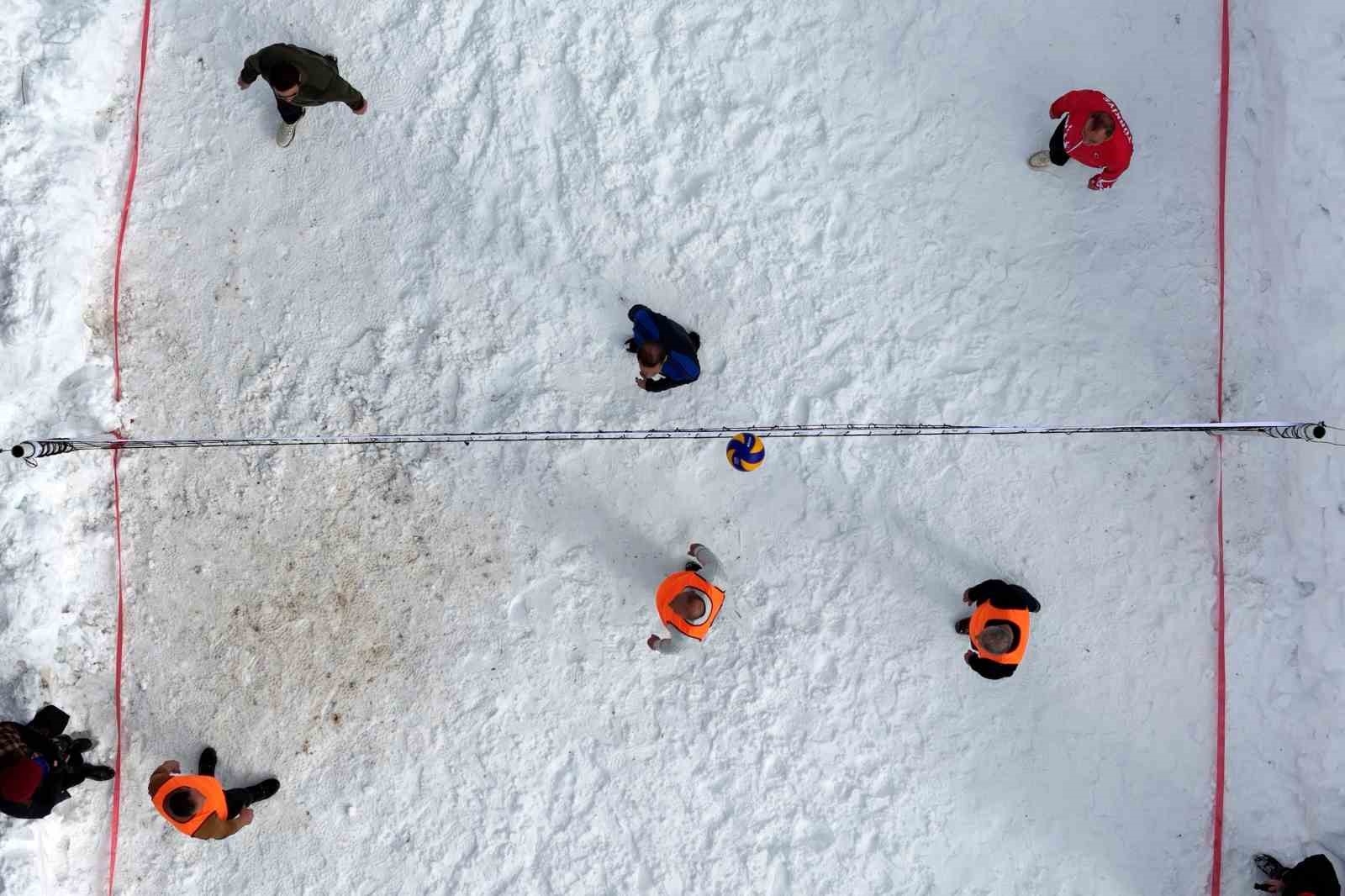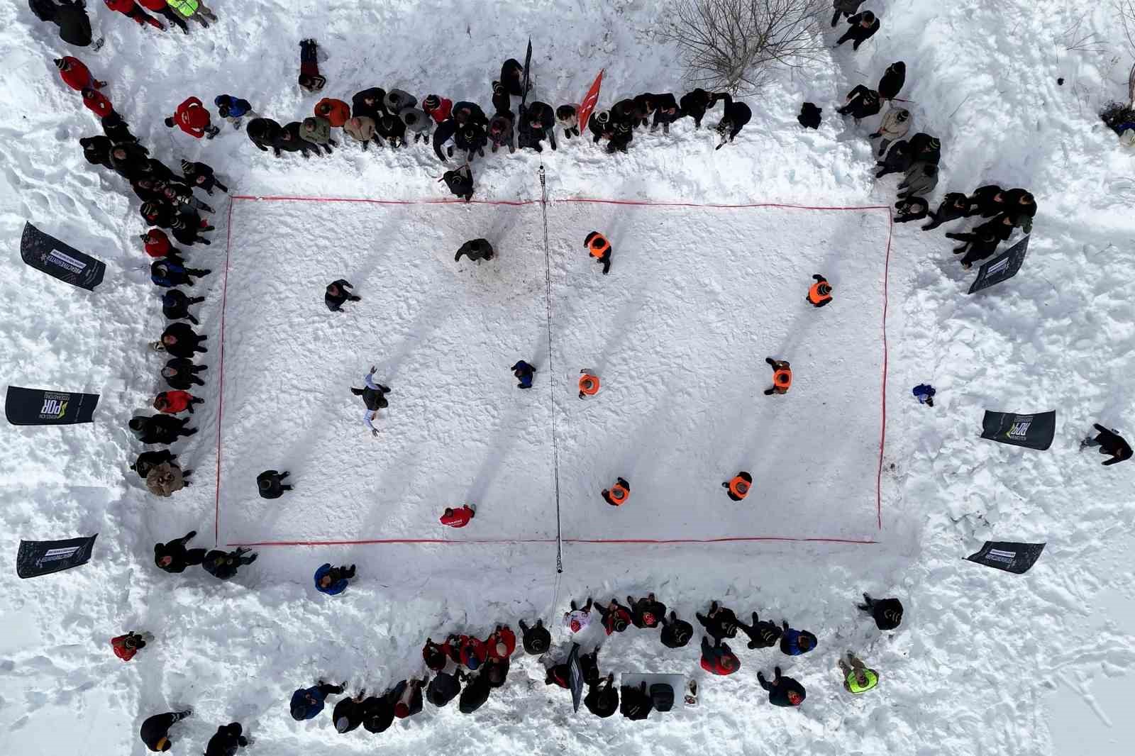 Denizden 2 bin 100 metre yükseklikte yer alan ve kış mevsiminin çetin geçtiği köyde yıllar önce başlayan kar üstünde voleybol etkinliği bu yıl şenlik havasında geniş bir katılımla gerçekleştirildi.