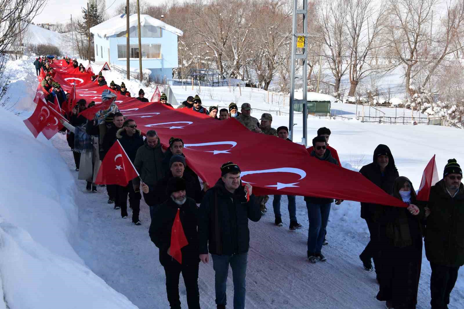Etkinlikte konuşan Gümüşhane Valisi Aydın Baruş, “Beyazla kırmızı ne kadar güzel yakışıyor” diyerek her tarafın bembeyaz olduğu bir ortamda ay-yıldızlı bayrağı köyün girişinden buraya kadar taşıyarak bu güzelliğe hep birlikte şahit olduklarını söyledi.