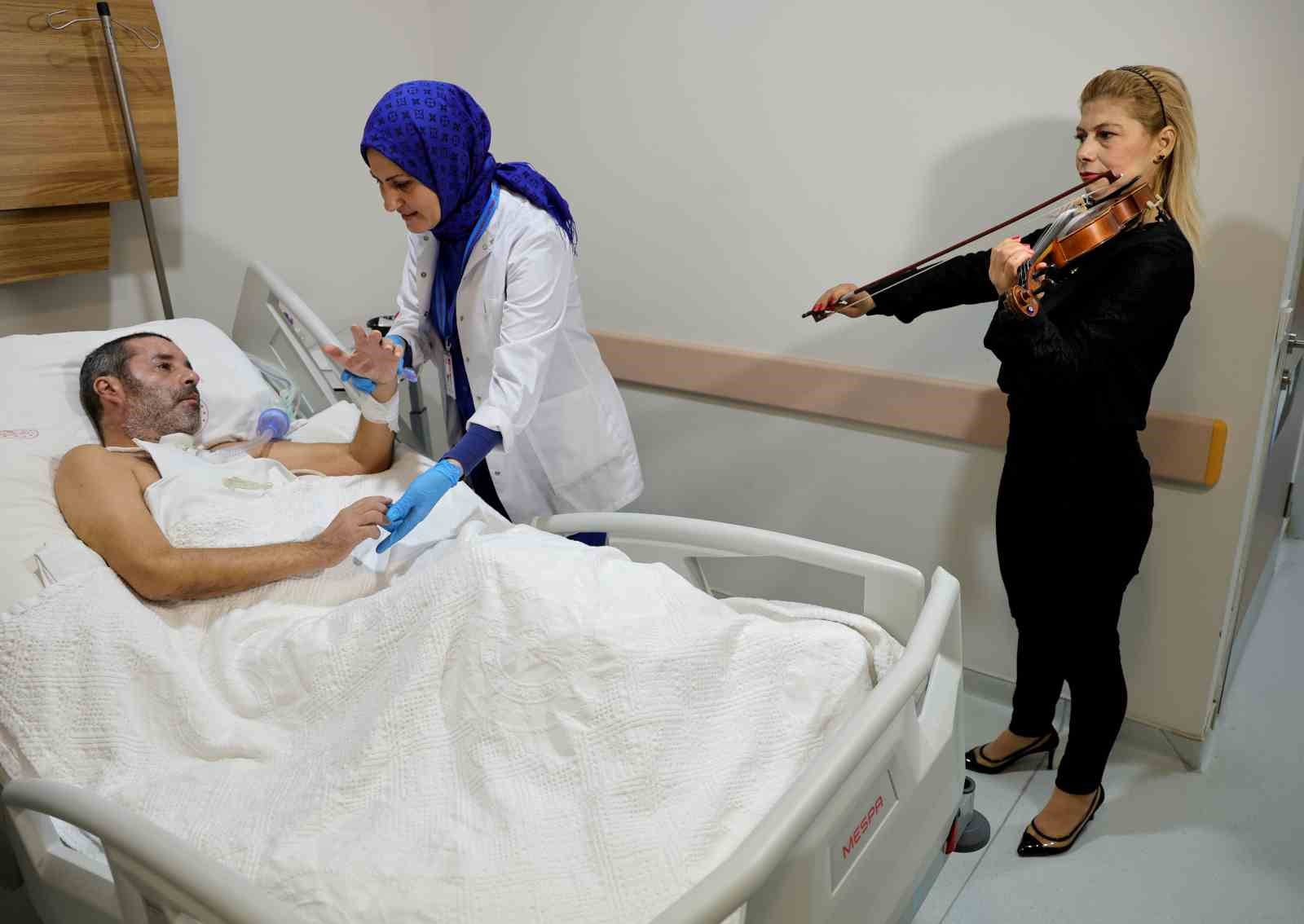 Adana Karşıyaka Devlet Hastanesi’nde bulunan ‘Palyatif Bakım Servisi’nde tedavi gören hastalara keman çalınarak müzik dinletisi sunuluyor. Serviste, hasta yakınları içinde Kur’an-ı Kerim okunup manevi destek hizmeti veriliyor.
