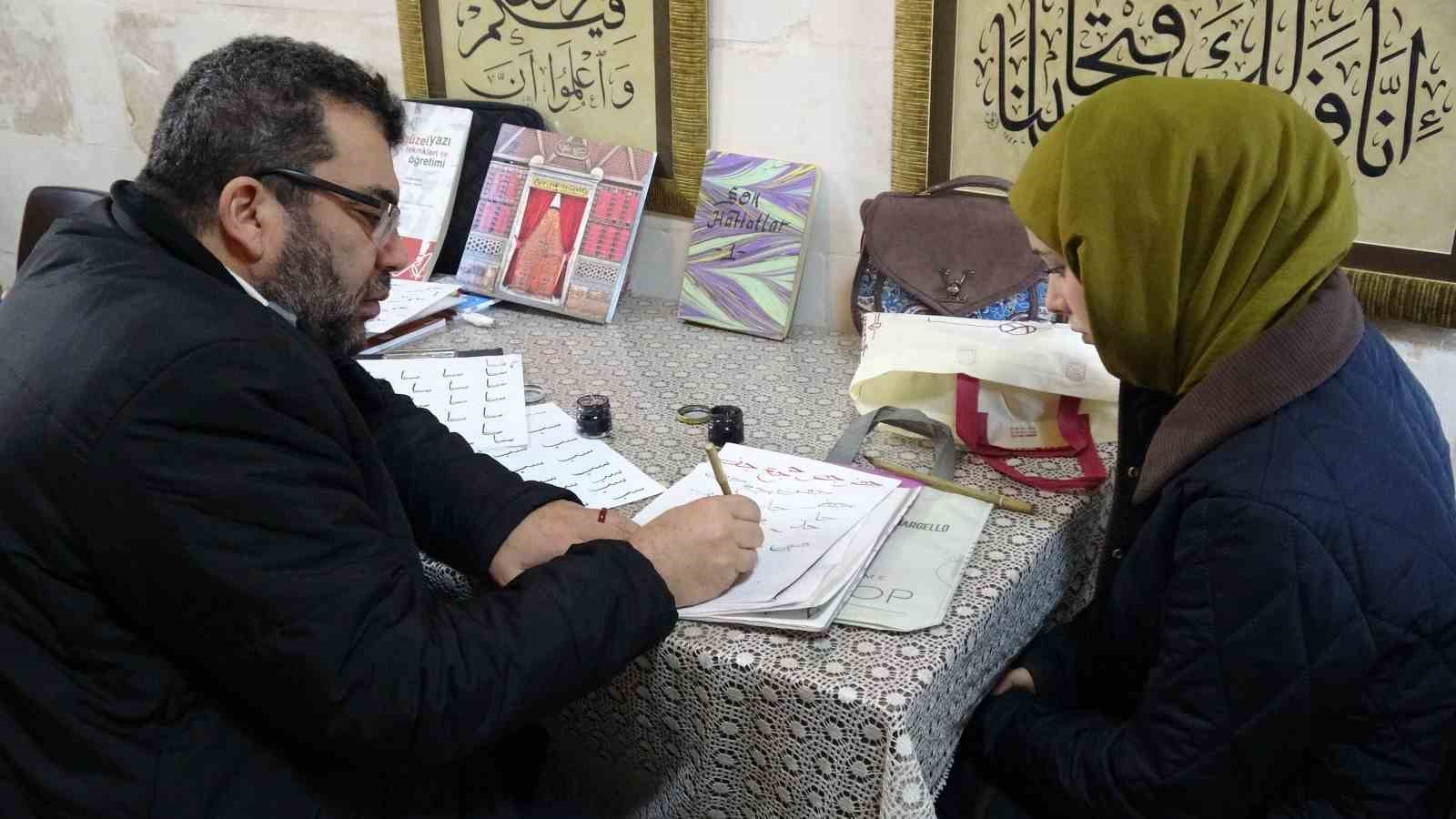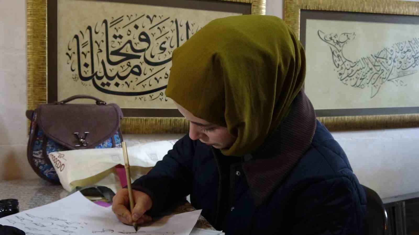 Hat sanatı eğitimi alan kursiyerlerden Bercis Taşkın da, “Hat sanatını daha iyi öğrenmek ve daha güzel yazmak için Mehmet hocamızdan ders alıyoruz. Daha iyi dersler alıp kendimizi bu alanda daha iyi bir şekilde ilerletebilmek için kursa geliyoruz. Kursumuz çok güzel geçiyor. Mehmet hocamızın verdiği eğitimler üzerine daha iyi yazmayı öğreniyoruz” diye konuştu.