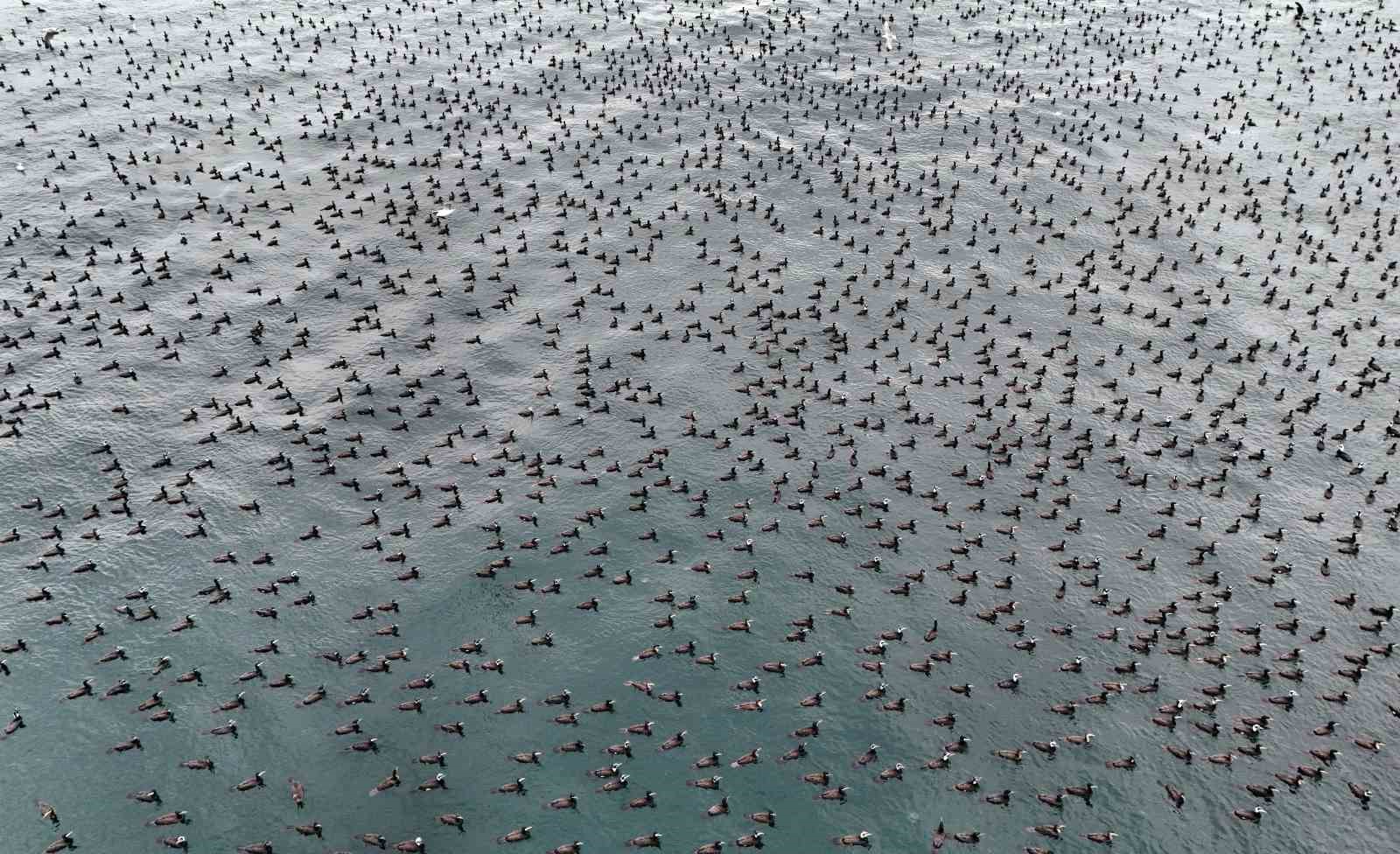 Havadan kaydedilen görüntüler, hem kuşların sürü davranışını hem de Marmara Denizi’nin kış aylarındaki ekolojik dengesini net bir şekilde ortaya koyarken, uzmanlar bu tür doğa olaylarının bölgenin biyolojik çeşitliliği açısından önemli olduğuna dikkat çekiyor.