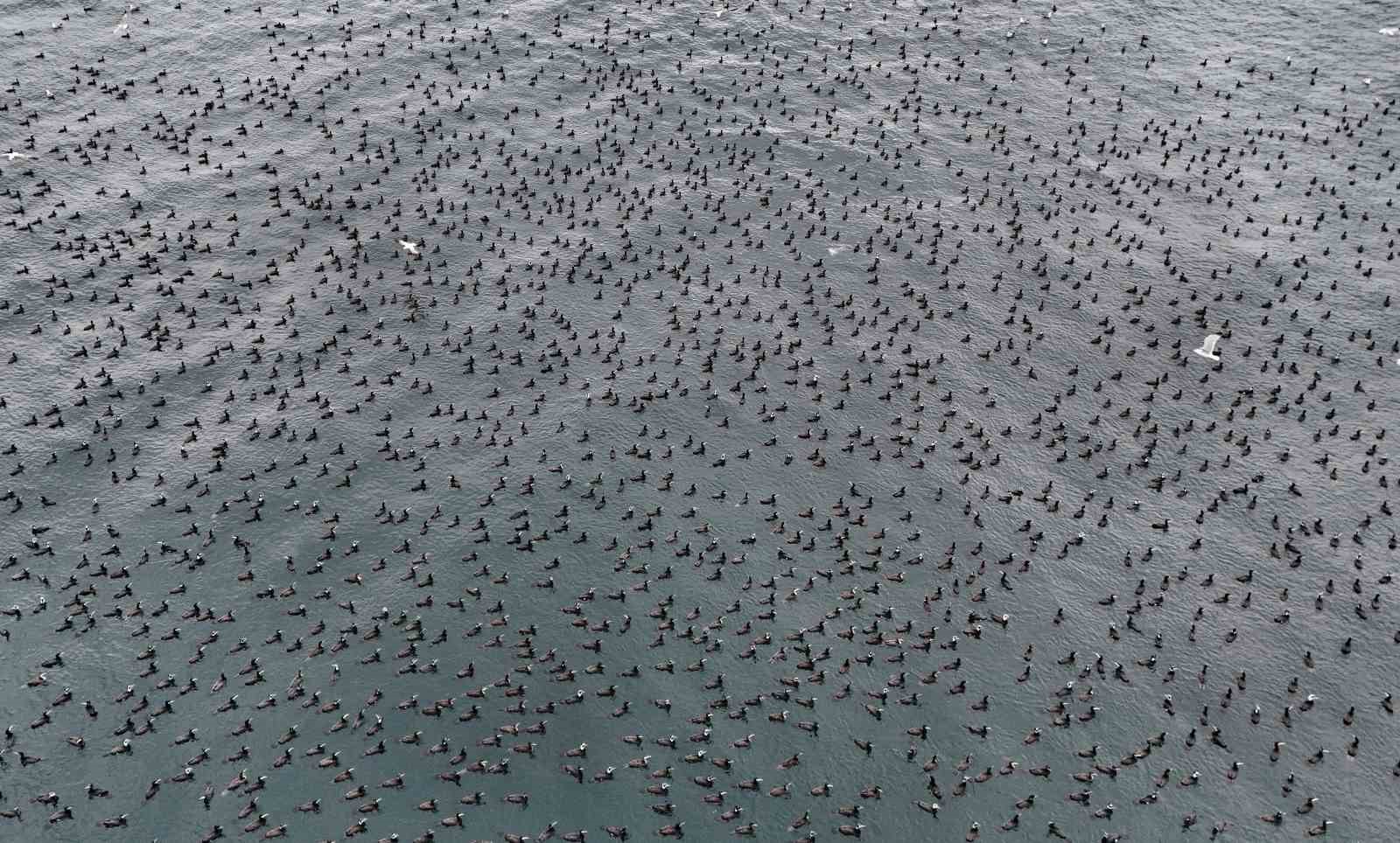 Havadan kaydedilen görüntüler, hem kuşların sürü davranışını hem de Marmara Denizi’nin kış aylarındaki ekolojik dengesini net bir şekilde ortaya koyarken, uzmanlar bu tür doğa olaylarının bölgenin biyolojik çeşitliliği açısından önemli olduğuna dikkat çekiyor.