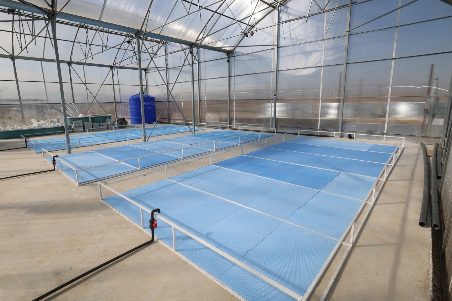 Teknopark bünyesinde 520 metrekare kapalı alanda kurulu üç serada proje kapsamında yer alan ürünlerin üretimi için teknik ve fiziki altyapı çalışmaları tamamlanarak canlıların havuzlara alınmadan önce biyolojik uyum çalışmalarına başlandı.