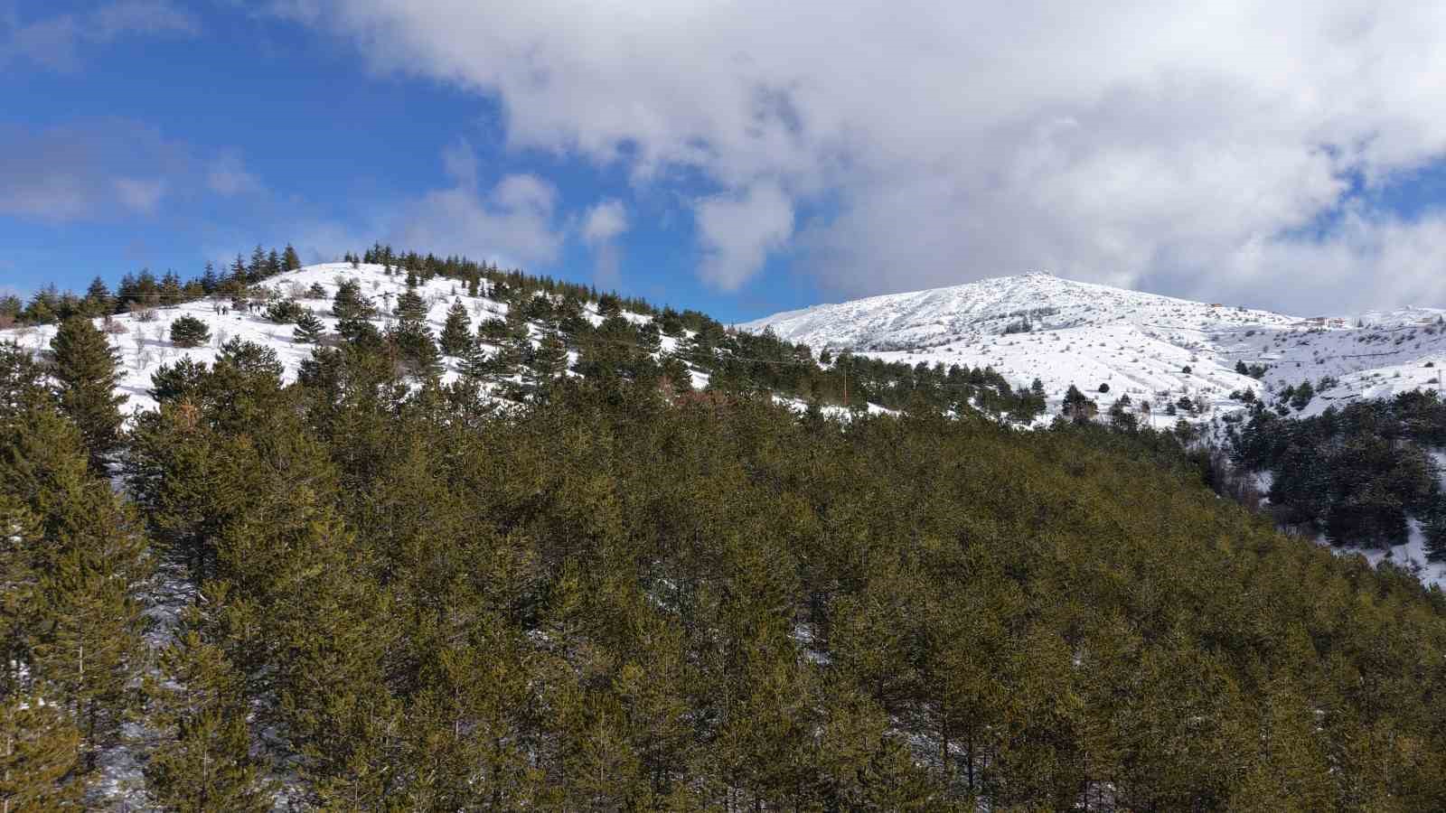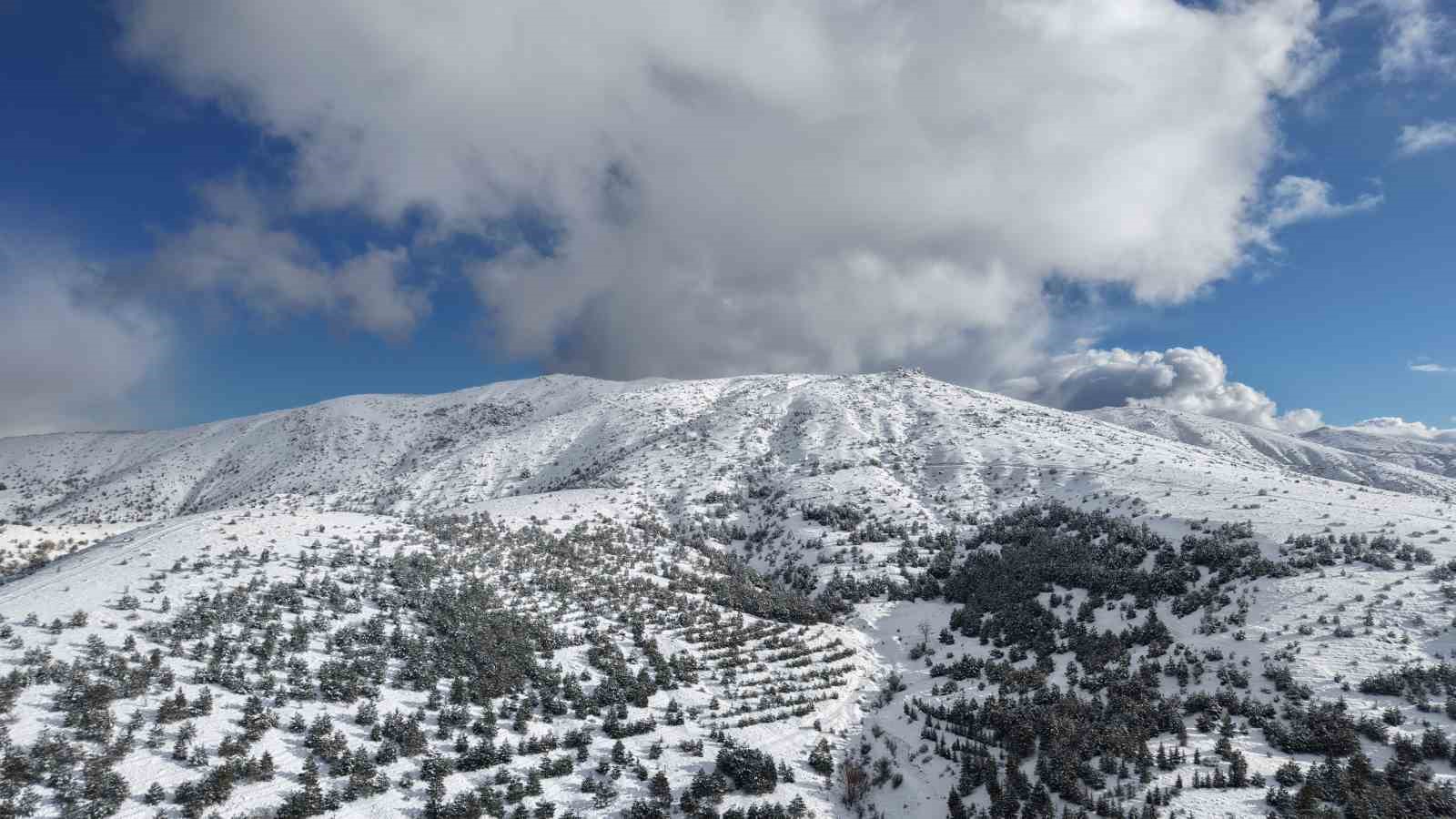 Soğuk havanın etkili olduğu Dinek Dağı’nda, karla kaplanan zirve ve yoğun bulutlar havadan görüntülendi. Beyaza bürünen dağ silueti, bulutların arasından yükselen manzarasıyla görsel şölen sundu. Yüksek kesimlerde kışın tüm güzelliğini yansıtan doğa, havadan çekilen görüntülerle gözler önüne serildi.