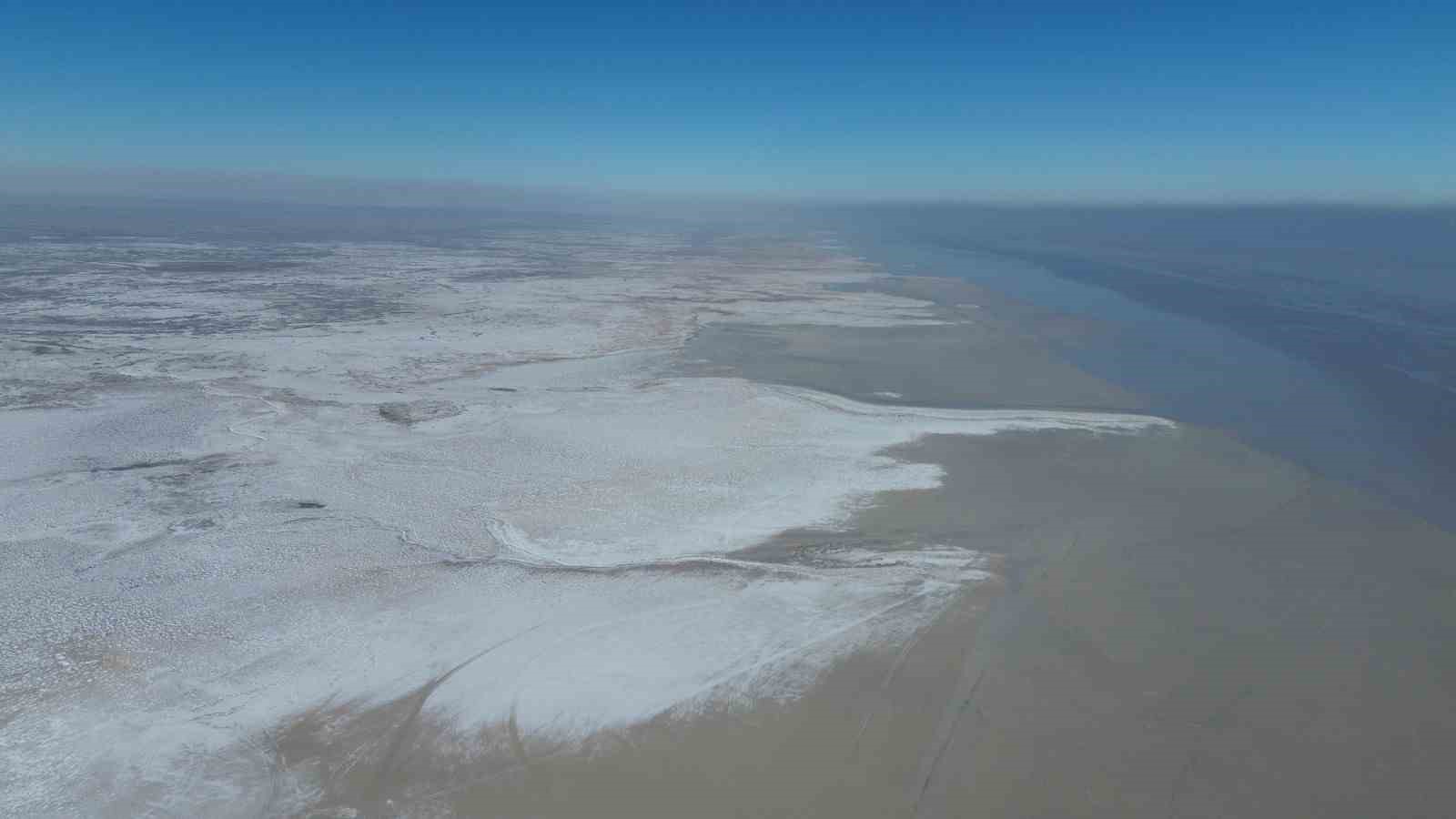 Aksaray’da yağmur ve kar yağışının ardından Tuz Gölü de kısmen beyaza bürünürken, yağışlar kuraklıkla mücadele eden göle umut oldu.
