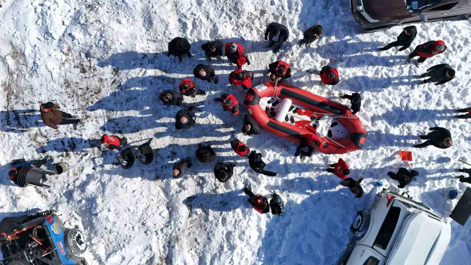 Erzurum Valisi Mustafa Çiftçi, Macera Off-road Arama, Kurtarma ve Doğa Sporları Kulübü üyeleriyle birlikte yaban hayvanları için yemleme yaptı daha sonra karda bot raftingi yaptı.