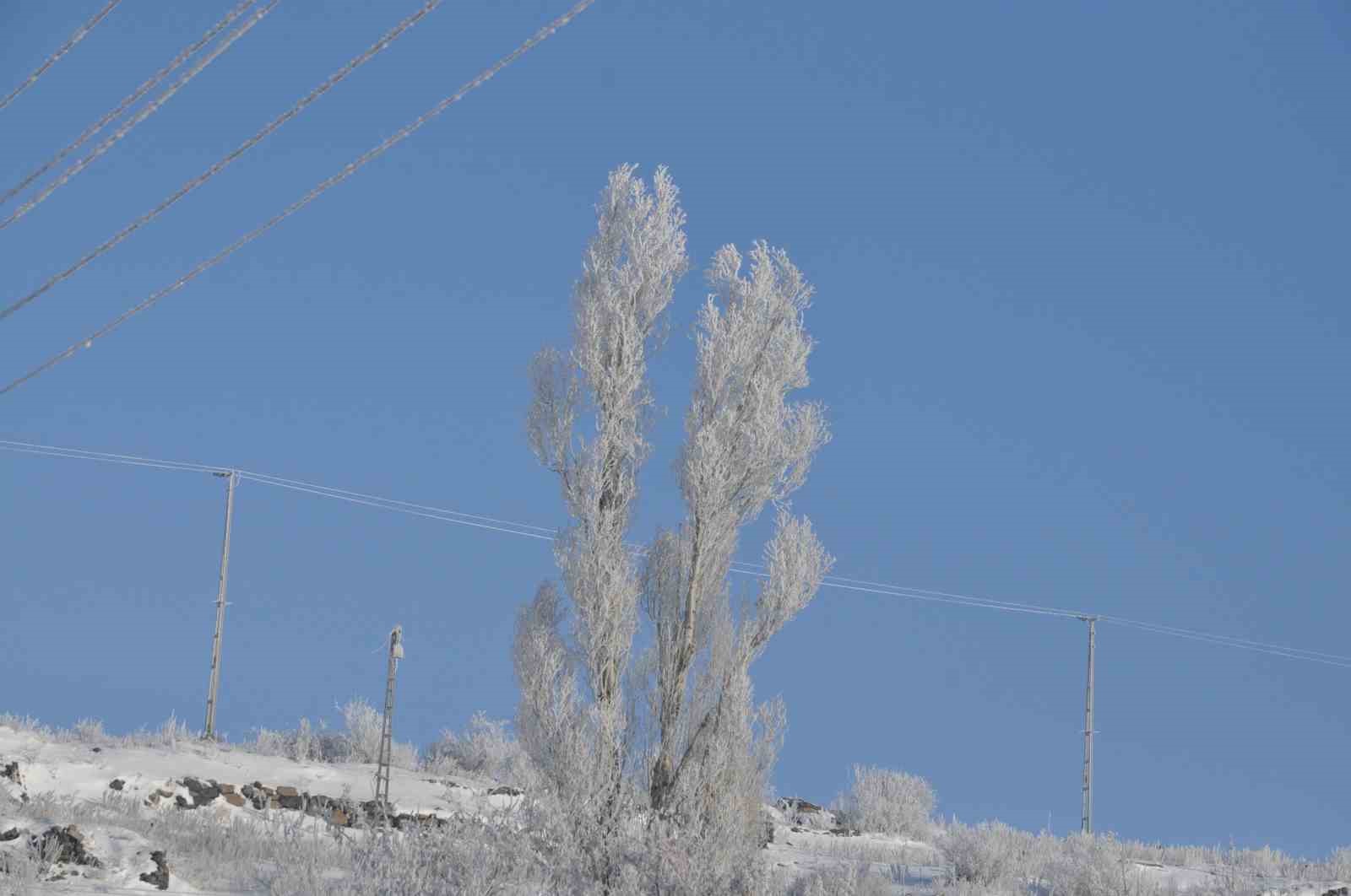 Kars’ta, hava sıcaklığının sıfırın altında 17 dereceye düşmesiyle birlikte doğa adeta beyaz bir örtüyle kaplandı. Kentte etkili olan sis ve soğuk havanın ardından ağaçların üzerini kaplayan kırağı, seyrine doyumsuz görüntüler oluşturdu.