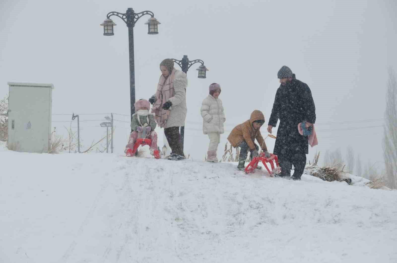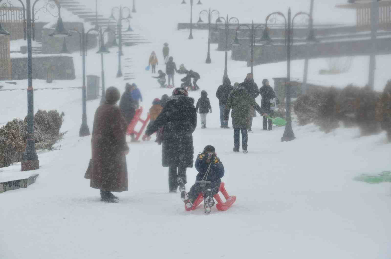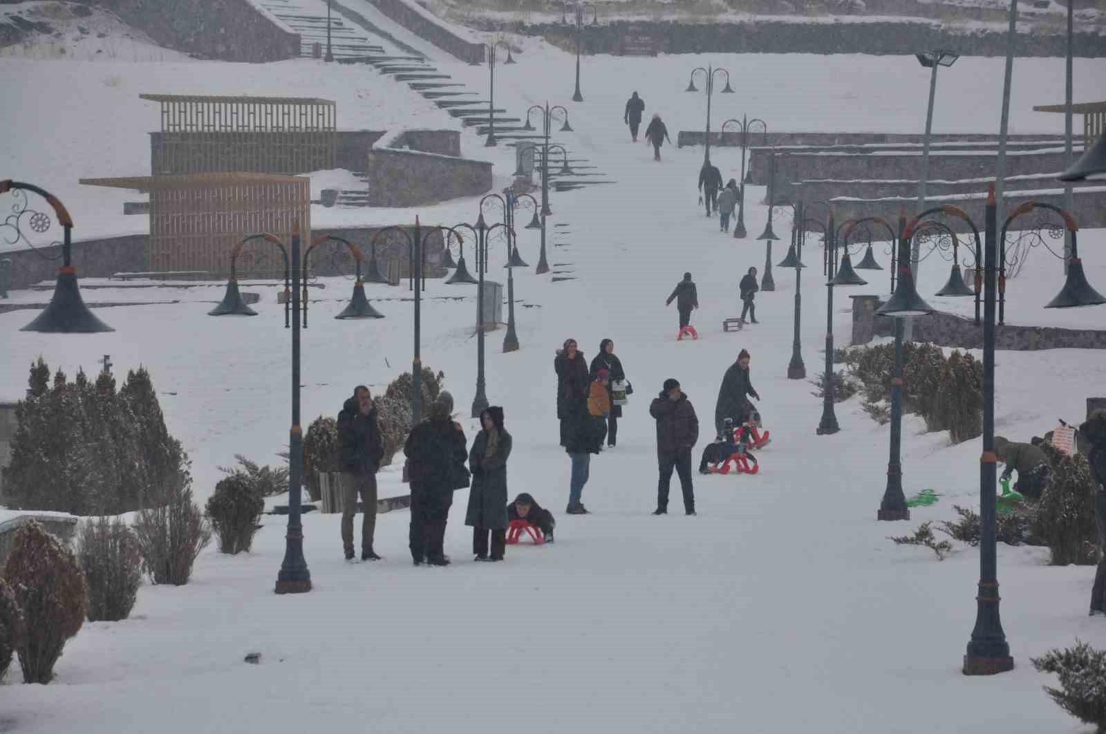 Kar yağışını fırsat bilen çocuklar ve gençler, kale yokuşunu adeta kayak pistine çevirdi. Yanlarında getirdikleri kızaklar, naylon poşetler ve tepsilerle kayanların neşesi, kentin sessizliğini kahkahalar bozarken, dondurucu soğuk eğlenceye engel olamadı.