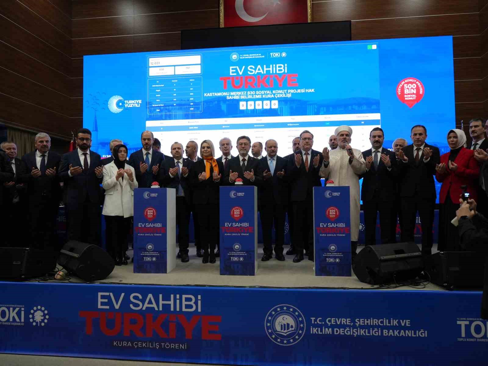 Kastamonu’da Türkiye Toplu Konut İdaresi (TOKİ) tarafından 500 Bin Sosyal Konut Projesi kapsamında inşa edilecek 2 bin 380 konutun hak sahiplerinin belirlenmesi için düzenlenen kura töreni, Tarım ve Orman Bakanı İbrahim Yumaklı’nın katılımıyla gerçekleştirildi. Kaan Talip Tığlı Konferans Salonu’nda düzenlenen törene vatandaşlar yoğun ilgi gösterdi.