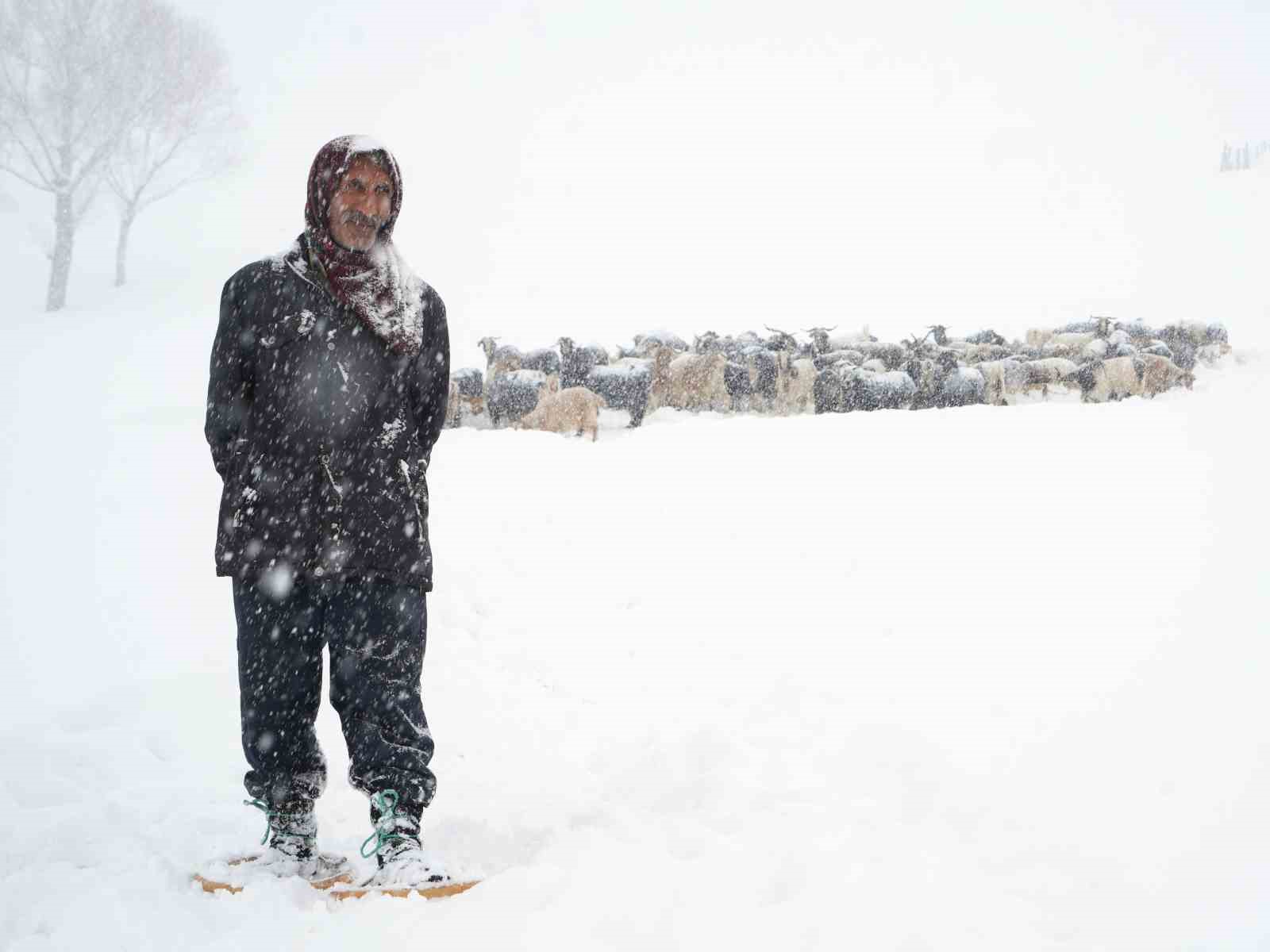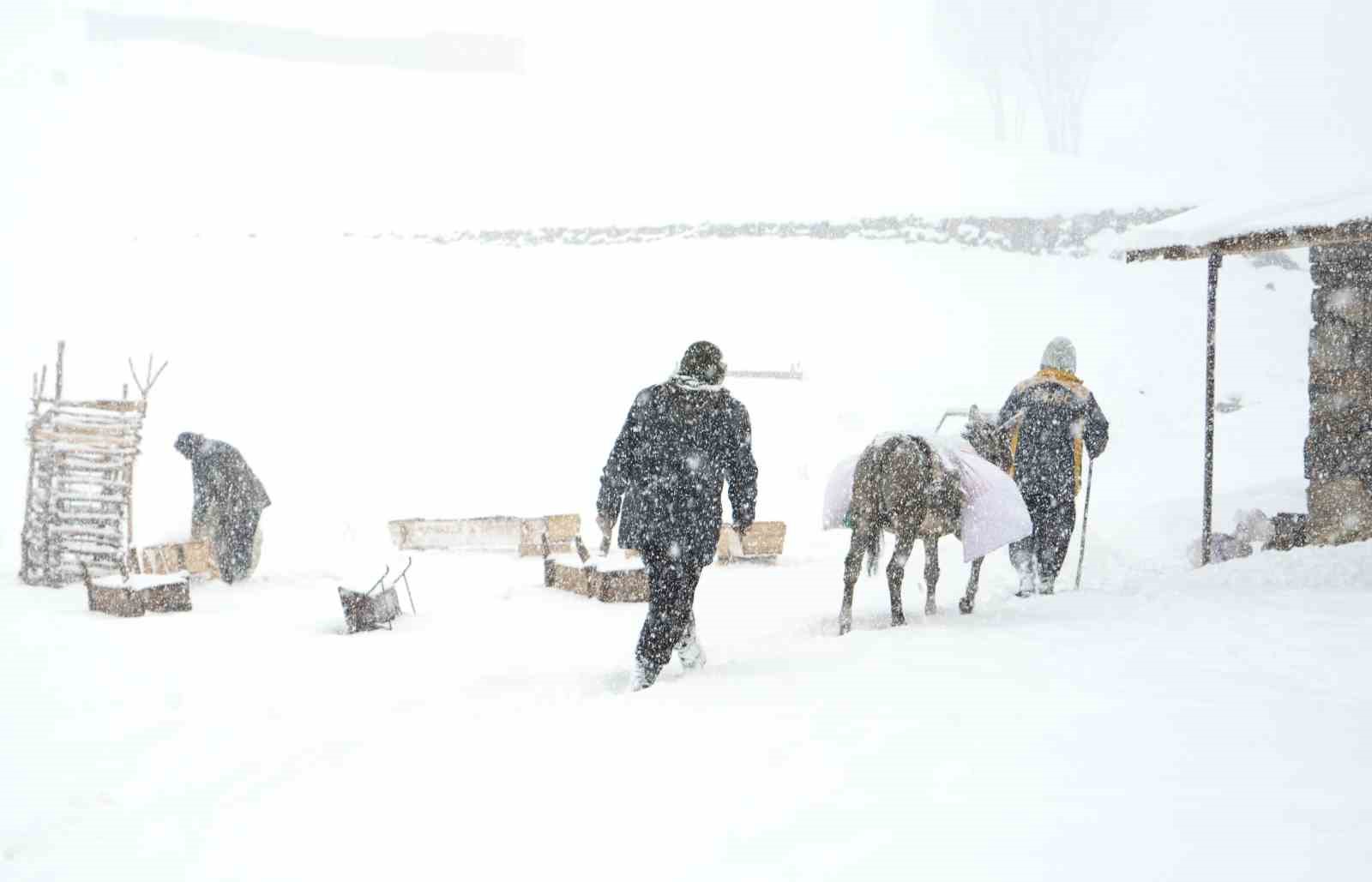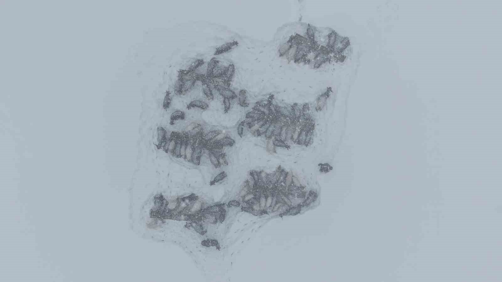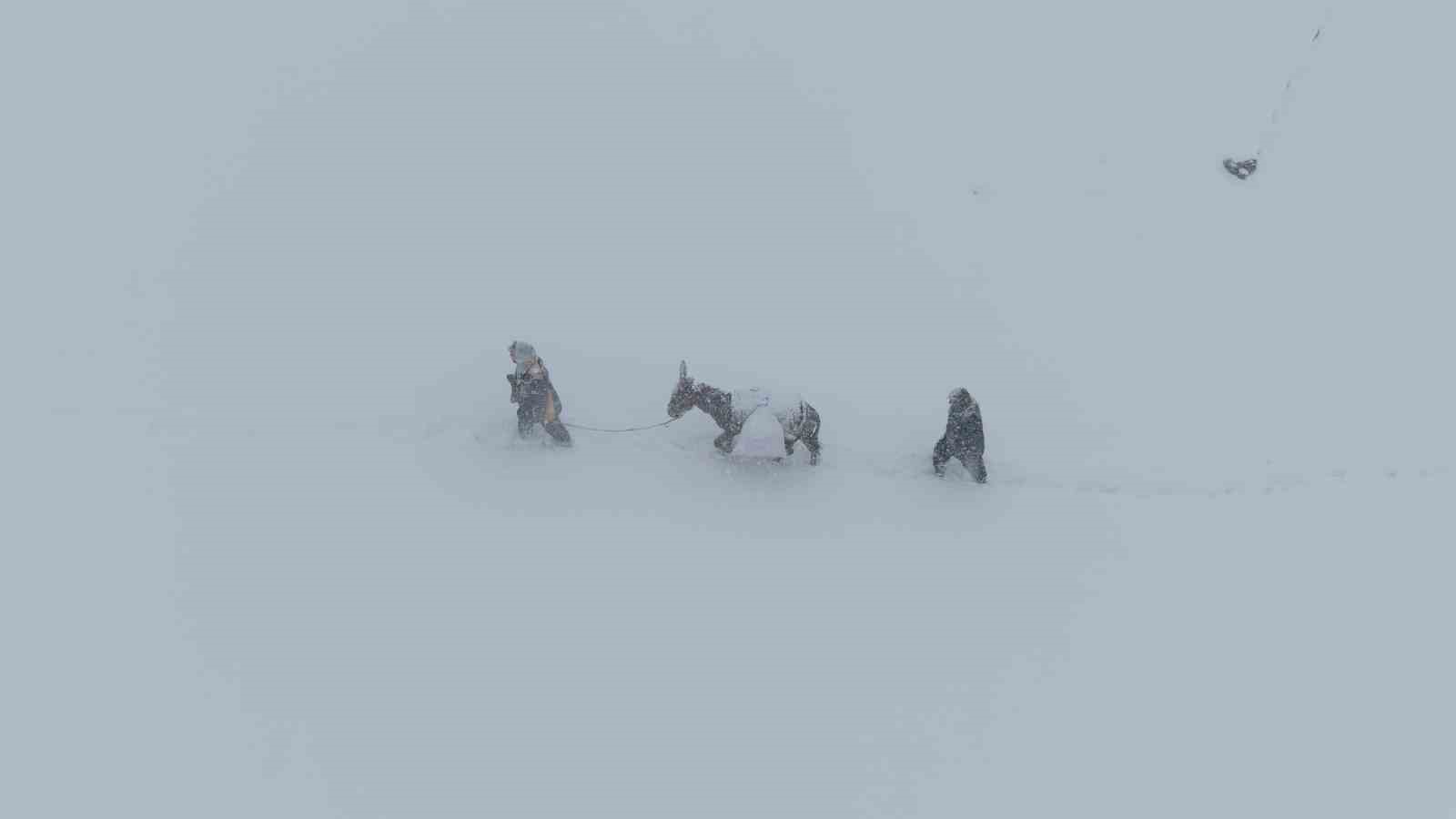 Yılın yaklaşık 6 ayını kar altında geçiren bölgede besiciler, dondurucu soğuk ve tipiye rağmen sırtlarında yem taşıyarak hayvanlarını ayakta tutmaya çalışıyor. Zorlu kış şartlarına rağmen üreticiler, tek geçim kaynakları olan hayvancılığı sürdürmek için büyük bir özveriyle mücadele ediyor.