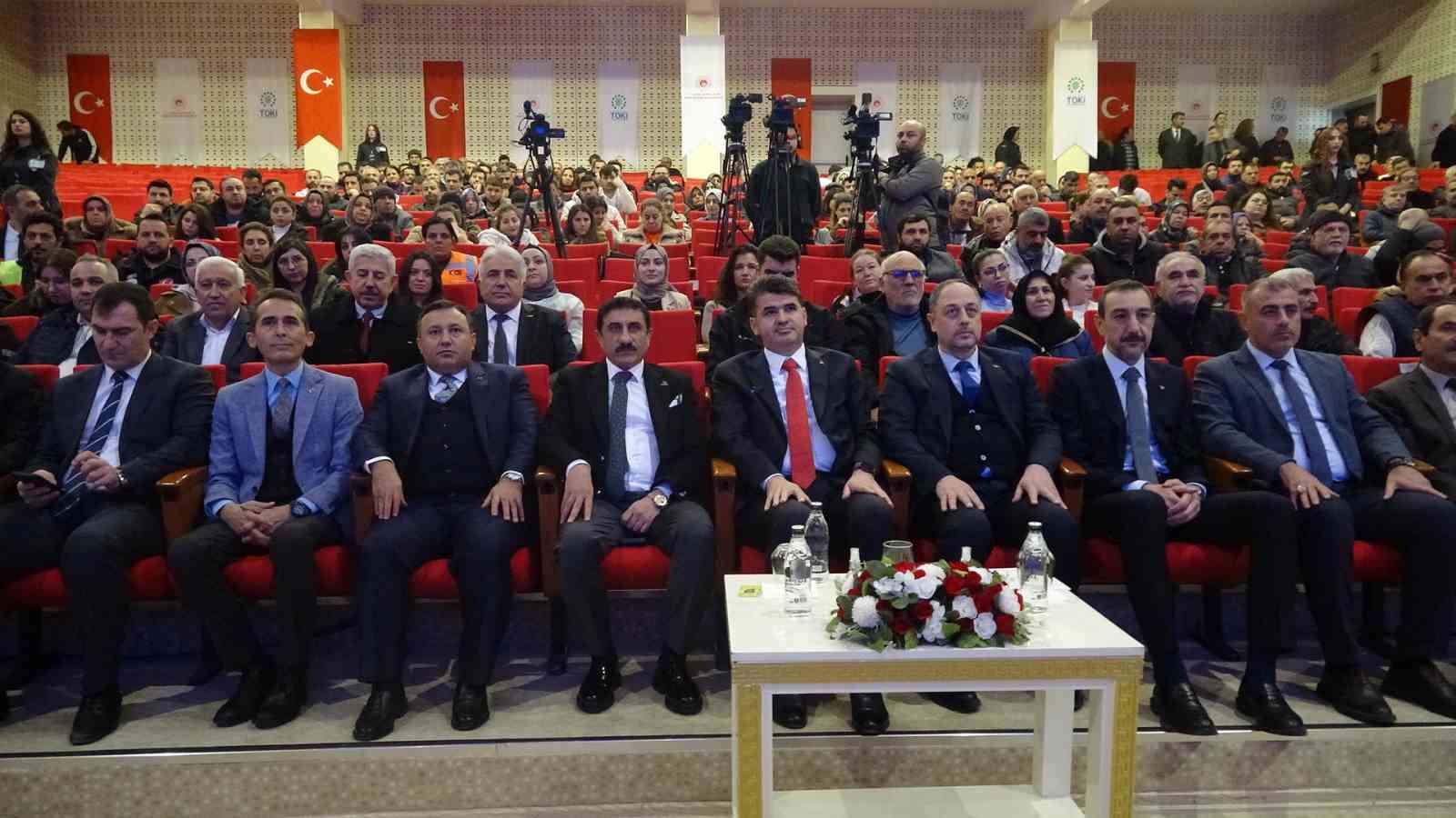 Vali Kalaylı, ‘’Cumhurbaşkanı Recep Tayyip Erdoğan’ın liderliğinde, Çevre, Şehircilik ve İklim Değişikliği Bakanı Murat Kurum’un koordinasyonunda yürütülen çalışmalarla bugüne kadar 455 binden fazla deprem konutu tamamlanarak hak sahibi vatandaşlarımıza teslim edilmiştir” diye konuştu.