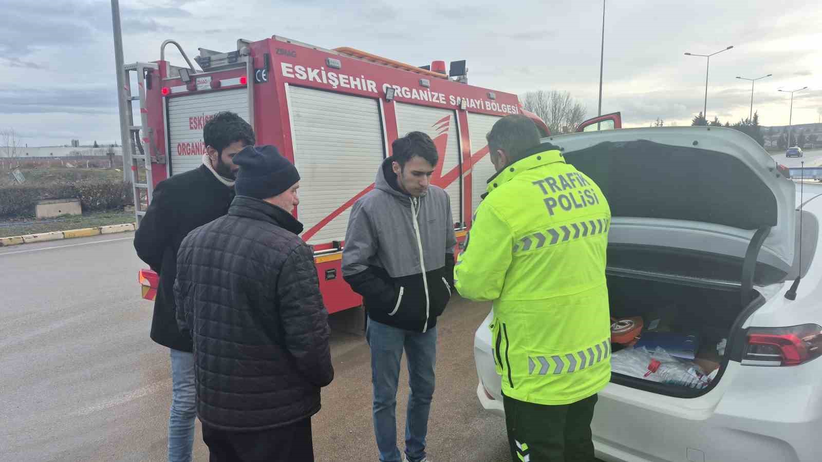 Eskişehir’de kayganlaşan yolda kontrolden çıkan otomobil park halindeki tıra çarptı. Çarpmanın etkisiyle tırın delinen deposu, çamurla kaplanarak mazot akışı kesildi.