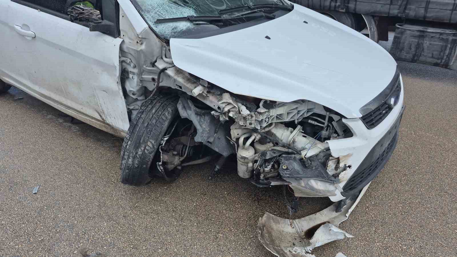 Olay, Organize Sanayi Bölgesi Teknoloji Caddesi üzerinde meydana geldi. Edinilen bilgilere göre, Arda Ü. idaresindeki 34 KM 3395 plakalı otomobil, yağmurun etkisiyle kayganlaşan yolda savrularak, yol kenarında park halindeki elektronik malzeme yüklü 34 EEP 115 dorse ve 34 HZ 2828 çekici plakalı tıra çarptı. Kaza sonrası, otomobilin sağ ön tekerleği yerinden koparken, tırın yakıt deposu ise aldığı darbeyle delindi. Delinen depodan mazot karayoluna aktı.