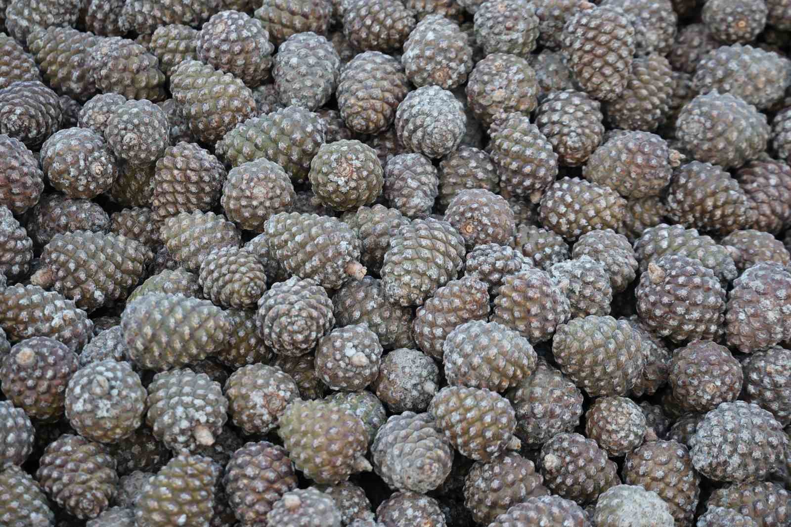 Türkiye’nin önemli ihracat ürünlerinden olan künarda (Çam fıstığı), kuraklık sebebiyle rekolte düşüklüğü yaşanırken, bin bir zorlukla toplanan kozalakların işlenmesi için fabrikalarda yoğun mesai süreci başladı.