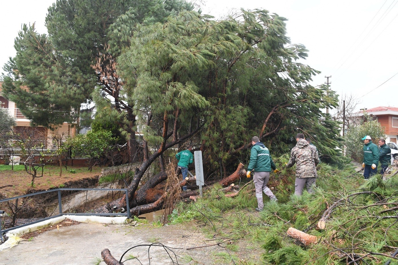Güzelçamlı Mahallesi’nde günlerdir süren yağışlar nedeniyle köklerinden koparak dere yatağına devrilen çam ağacı, köprü ve yolda maddi hasara yol açtı. Dere yatağının kapanmasıyla artan taşkın riski, belediye ekiplerinin hızlı müdahalesiyle giderildi …