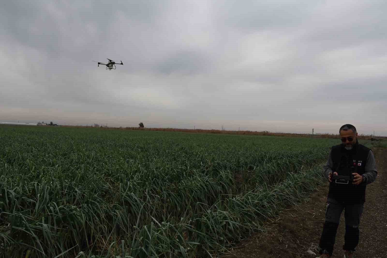 Bu çerçevede Mersin’in Tarsus ilçesinde bulunan 200 dönümlük pırasa tarlasında dronla gübreleme çalışması gerçekleştirildi. 50 kilo taşıma kapasiteli dronlara yüklenen gübreler, kısa sürede ve dengeli şekilde araziye uygulandı. 2 işçinin 3-4 saatte yapabileceği işi yarım saatte yapan dronun dönüm başına üreticiye ise yaklaşık 120 TL civarında maliyeti olduğu öğrenildi.