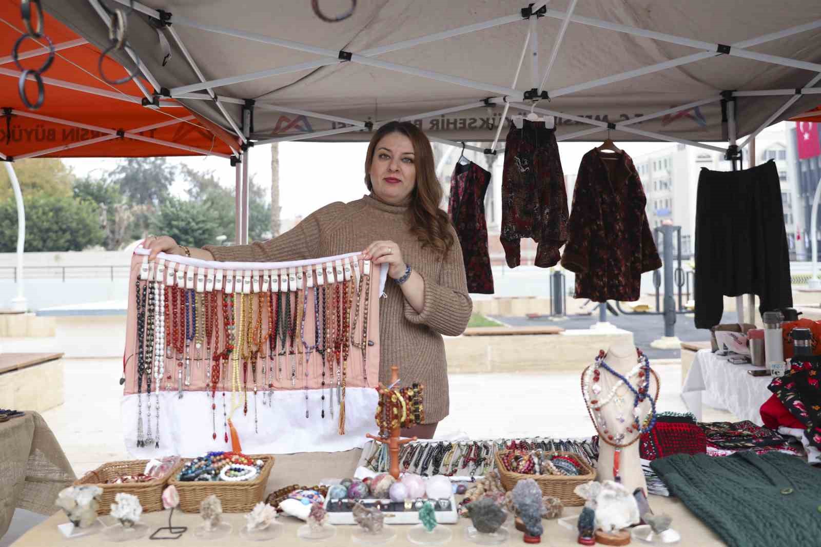 El emeği takı ürünleri satan Sinem Arslan da hemşire olduğunu ancak atanamadığı için bu alanda üretime yöneldiğini belirtti. Arslan, “Doğal taşlardan tespih, bileklik ve kolyeler yapıyorum. Belediyemizin sunduğu bu imkân sayesinde haftada bir gün de olsa eve katkı sağlayabiliyorum” ifadelerini kullandı.