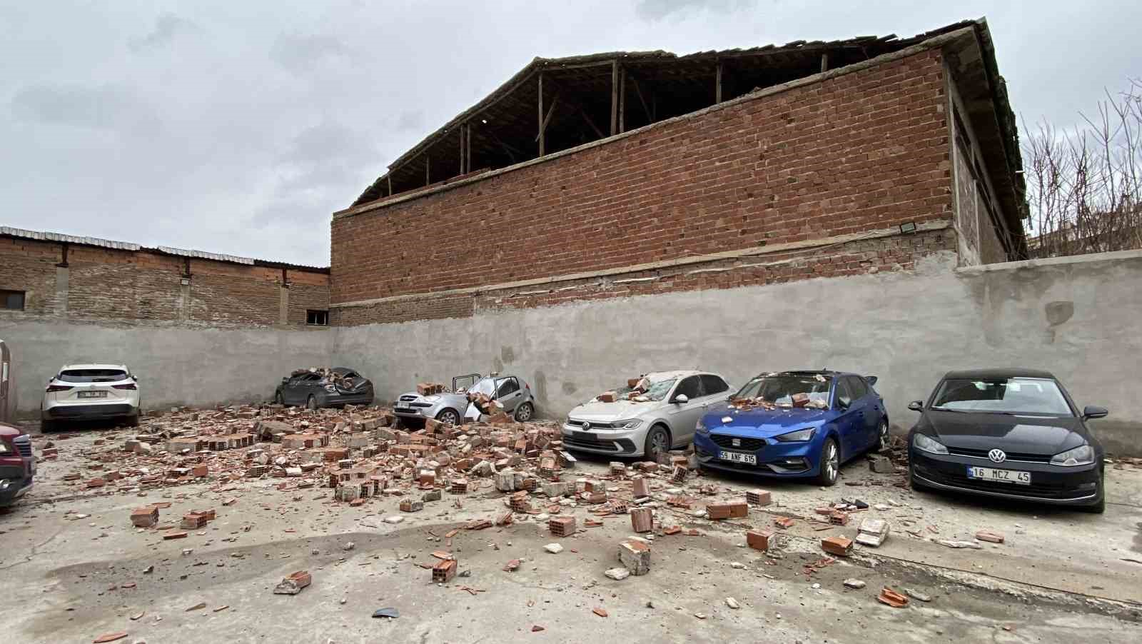 Eskişehir’de fırtına sebebiyle bir metruk binanın çatı duvarı açık otoparka devrilirken, 6 araçta maddi hasar oluştu. Çevre sakinleri, duvarın devrilmesi ile birlikte duyulan gürültüyü patlama sesi zannetti.