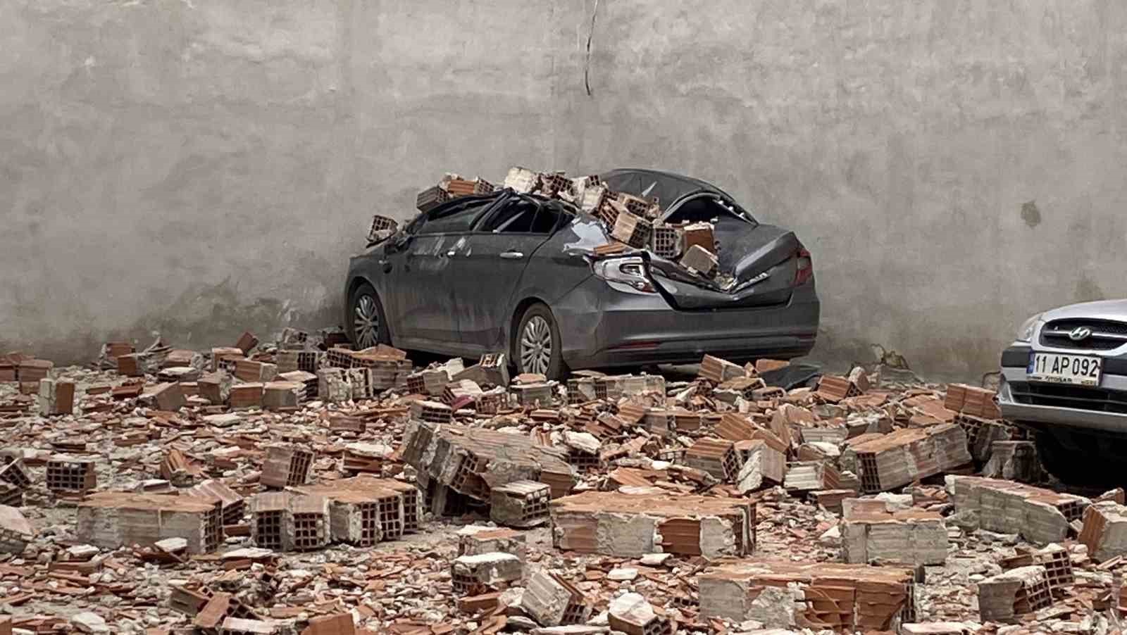 Eskişehir’de fırtına sebebiyle bir metruk binanın çatı duvarı açık otoparka devrilirken, 6 araçta maddi hasar oluştu. Çevre sakinleri, duvarın devrilmesi ile birlikte duyulan gürültüyü patlama sesi zannetti.