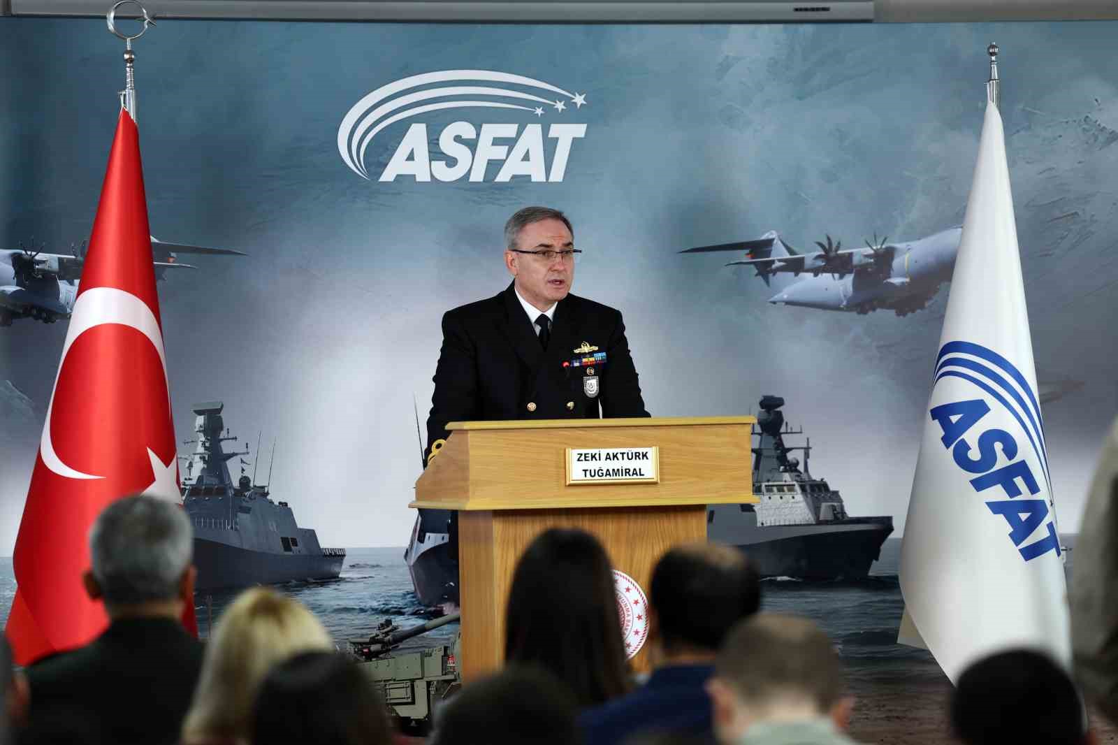 Milli Savunma Bakanlığı Basın ve Halkla İlişkiler Müşaviri Tuğamiral Zeki Aktürk, ASFAT Yerleşkesi’nde düzenlenen haftalık basın bilgilendirme toplantısında yaptığı açıklamada savunma sanayisinde yerlileşme, ihracat kapasitesinin artırılması ve Türk Silahlı Kuvvetlerinin güçlendirilmesine yönelik stratejik projelerin kararlılıkla sürdürüldüğünü söyledi. Toplantının kuruluşunun 8. yıl dönümünü kutlayan ve üretim kabiliyeti, mühendislik gücüyle öne çıkan Bakanlığa bağlı Askeri Fabrika ve Tersane İşletme Anonim Şirketi (ASFAT) ev sahipliğinde gerçekleştirildiğini belirten Aktürk, Cumhuriyetin kurucusu Gazi Mustafa Kemal Atatürk’ün annesi Zübeyde Hanım’ı da vefatının 103’üncü yıl dönümünde rahmet ve saygıyla andı. Aktürk, 12 Ocak 2018’de kurulan ASFAT’ın kara, hava ve deniz platformlarında geliştirdiği yüksek teknoloji ürünleri, bakım-onarım-modernizasyon kabiliyetleri ve uluslararası projeleriyle Türkiye’nin en hızlı büyüyen savunma sanayii şirketlerinden biri haline geldiğini ifade etti. ASFAT’ın 2025 yılı itibarıyla dünyanın en büyük 100 savunma sanayii şirketi arasında 78’inci sıraya yükseldiğini vurgulayan Aktürk, bunun önemli bir başarı olduğunu kaydetti. ASFAT’ın Pakistan MİLGEM Projesi’nden açık deniz karakol gemilerine, Fırtına obüsü ve Panter modernizasyonundan hassas güdüm kiti üretimine, mekanik mayın temizleme teçhizatından Yüzer Havuz ve Millî Denizaltı Projesi’ne kadar geniş bir alanda faaliyet gösterdiğini aktaran Aktürk, şirketin Türkiye Yüzyılı’nın öncü projelerinden Milli Denizaltı (MİLDEN) ve TF-2000 Hava Savunma Harbi Muhribi projelerinde ana yüklenici olarak kritik sorumluluklar üstlendiğini kaydetti.