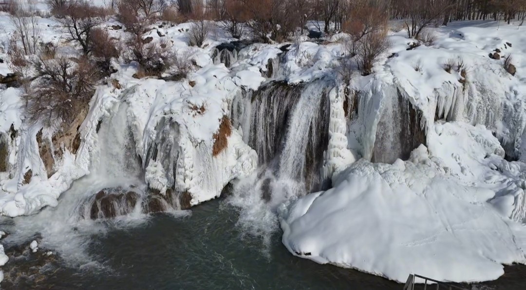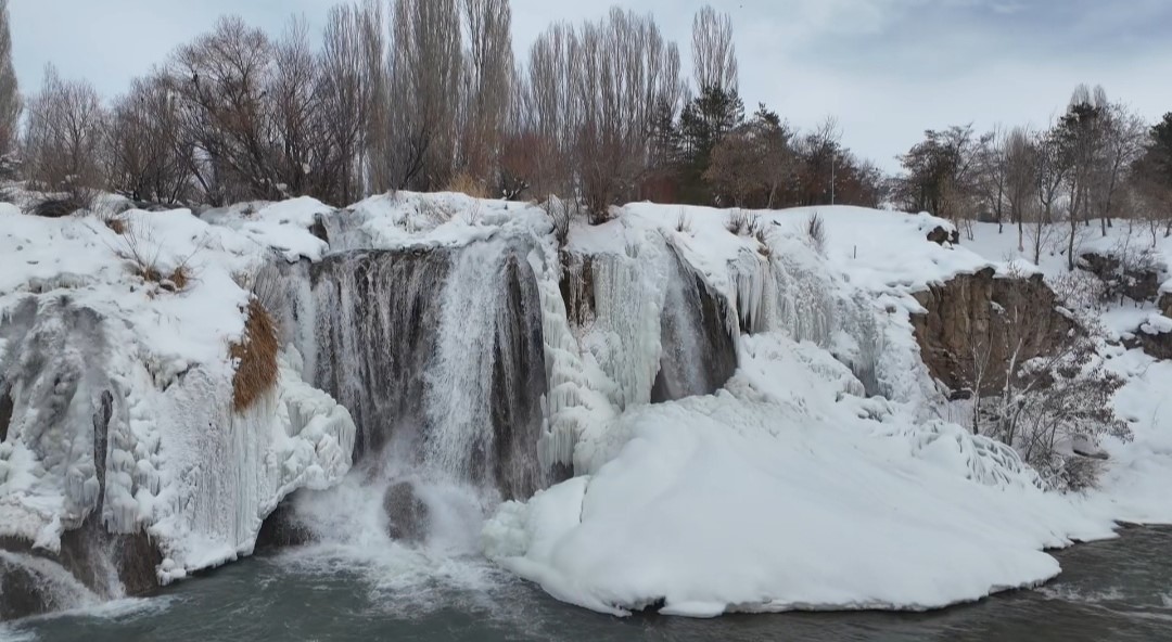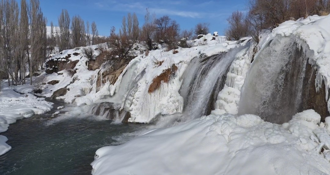 Van’ın doğa harikası Muradiye Şelalesi, dondurucu soğukların ardından adeta bir masal diyarına dönüştü. Hava sıcaklığının sıfırın altına düşmesiyle birlikte şelale buz tutarken, çevresini saran kar örtüsüyle ortaya çıkan manzara ’beyaz gelinlik’ yakıştırmasını bir kez daha haklı çıkardı. Her mevsim binlerce turisti ağırlayan Muradiye Şelalesi, kış mevsiminin gelişiyle birlikte büyüleyici bir görünüme büründü. Bölgede etkili olan kar yağışı ve dondurucu soğuklar, yaklaşık 20 metre yükseklikten akan suları kısmen dondurarak dev buz sarkıtları oluşturdu.
