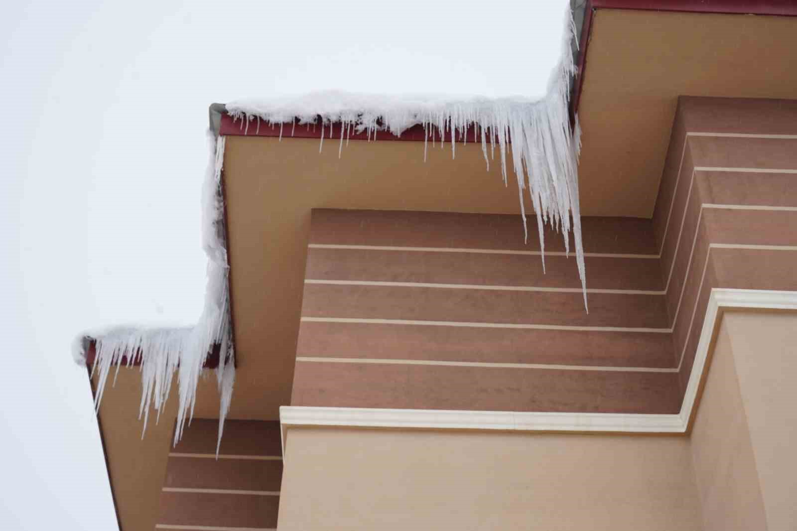 Muş’ta kar yağışının ardından etkisini artıran Sibirya soğukları nedeniyle ev ve iş yerlerinin çatılarında metrelerce uzunlukta buz sarkıtları oluştu.