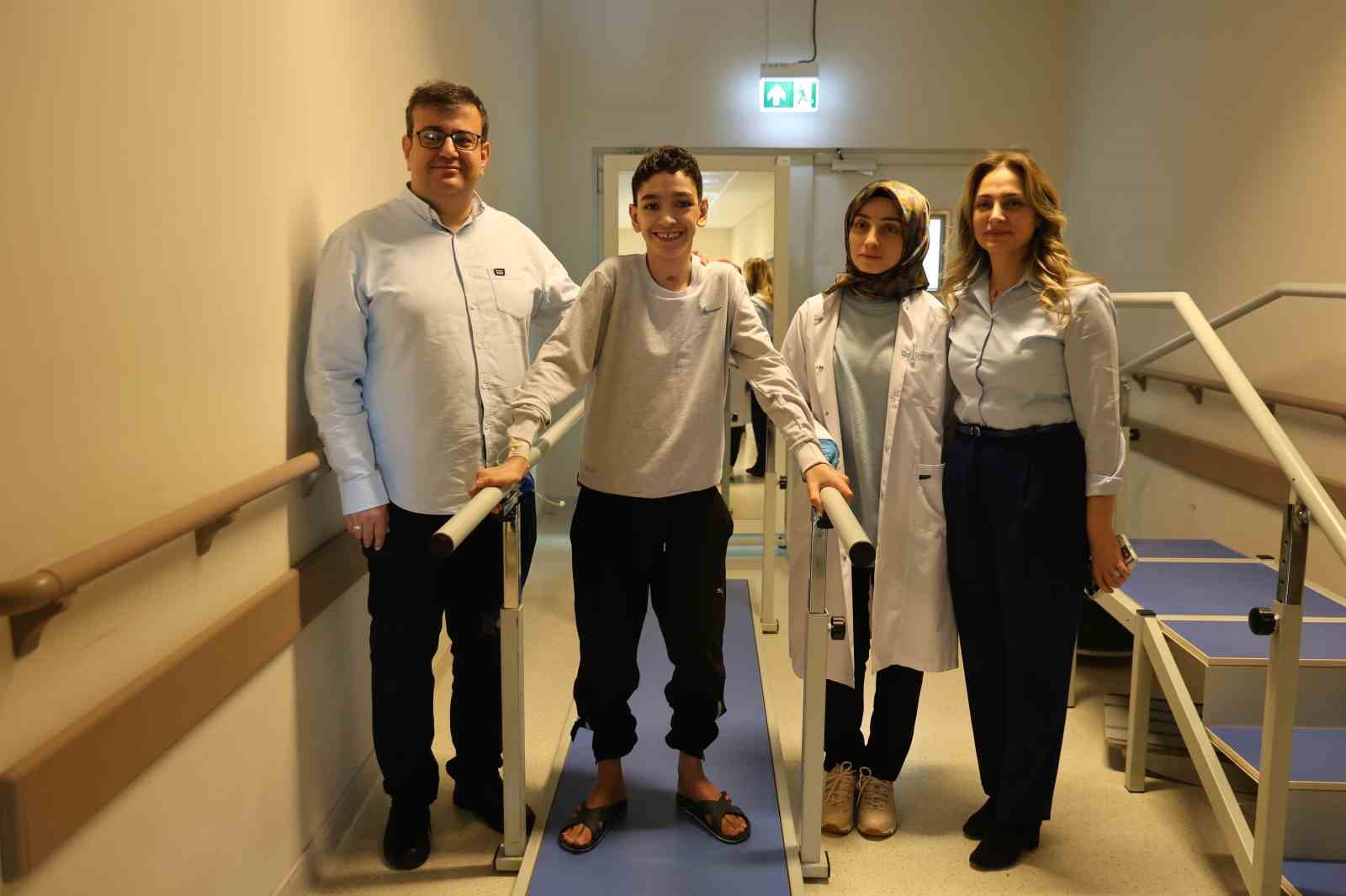 Bingöl’de 2 yıl önce otoimmün miyelit tanısıyla Elazığ Fethi Sekin Şehir Hastanesine sevk edilen 14 yaşındaki Aziz Enül, yapılan başarılı tedavilerin ardından 2 yılın sonunda destekli bir şekilde yürümeye başladı.