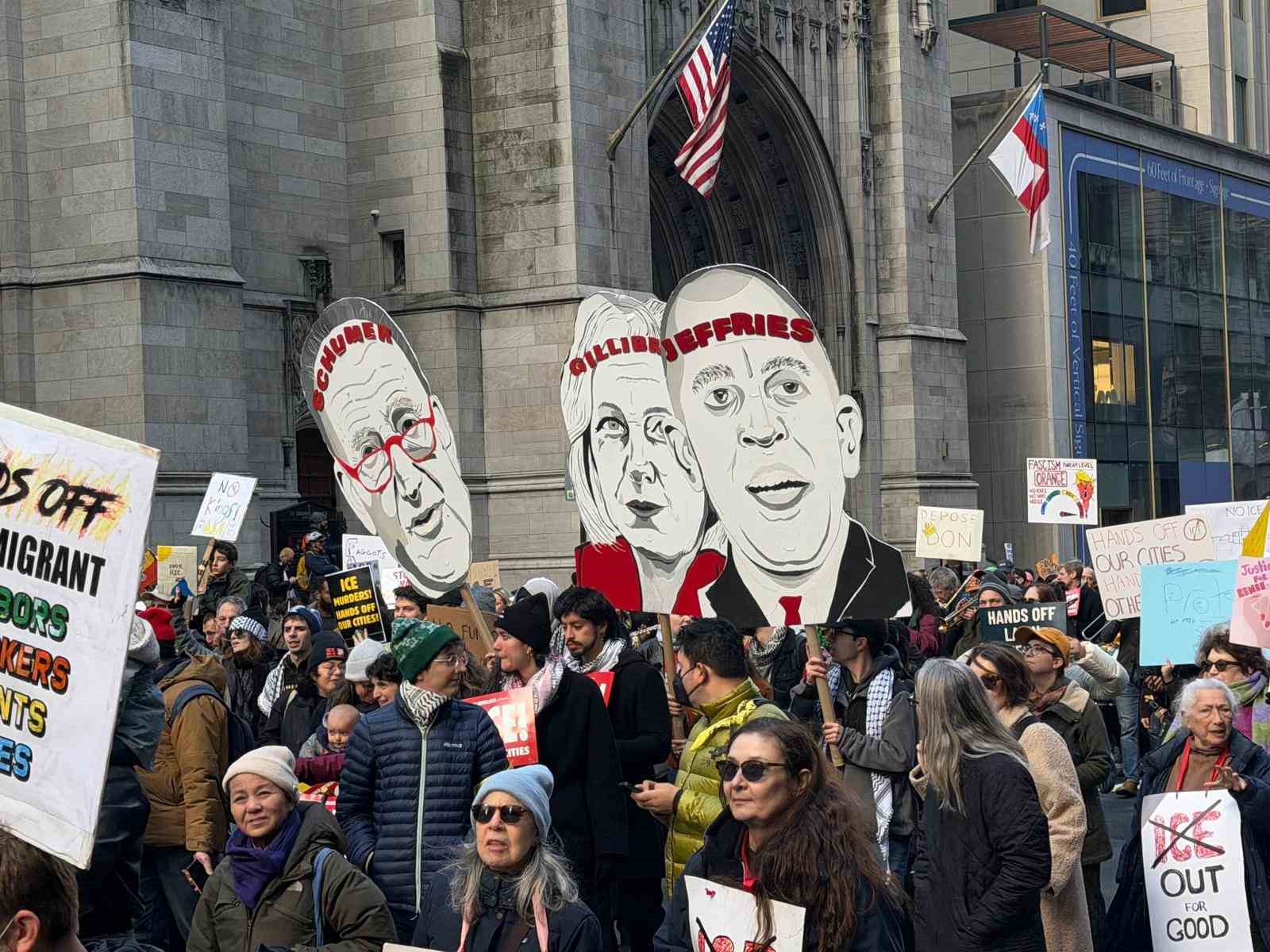 ABD Göçmenlik ve Gümrük Muhafaza Dairesi (ICE) ajanlarının Çarşamba günü Minnesota eyaletine bağlı Minneapolis kentinde Renee Nicole Good adlı kadını öldürmesinin ardından ülke genelinde tepkiler büyüyor. New York şehrinde binlerce kişi federal göçmenlik politikalarına karşı protesto gösterisi düzenledi. ABD’nin en kalabalık şehrinde binlerce ICE karşıtı gösterici, Manhattan’ın beşinci caddesinde toplanarak federal göçmenlik yetkililerini ve ABD Başkanı Donald Trump’ı hedef alan pankartlar taşıdı.