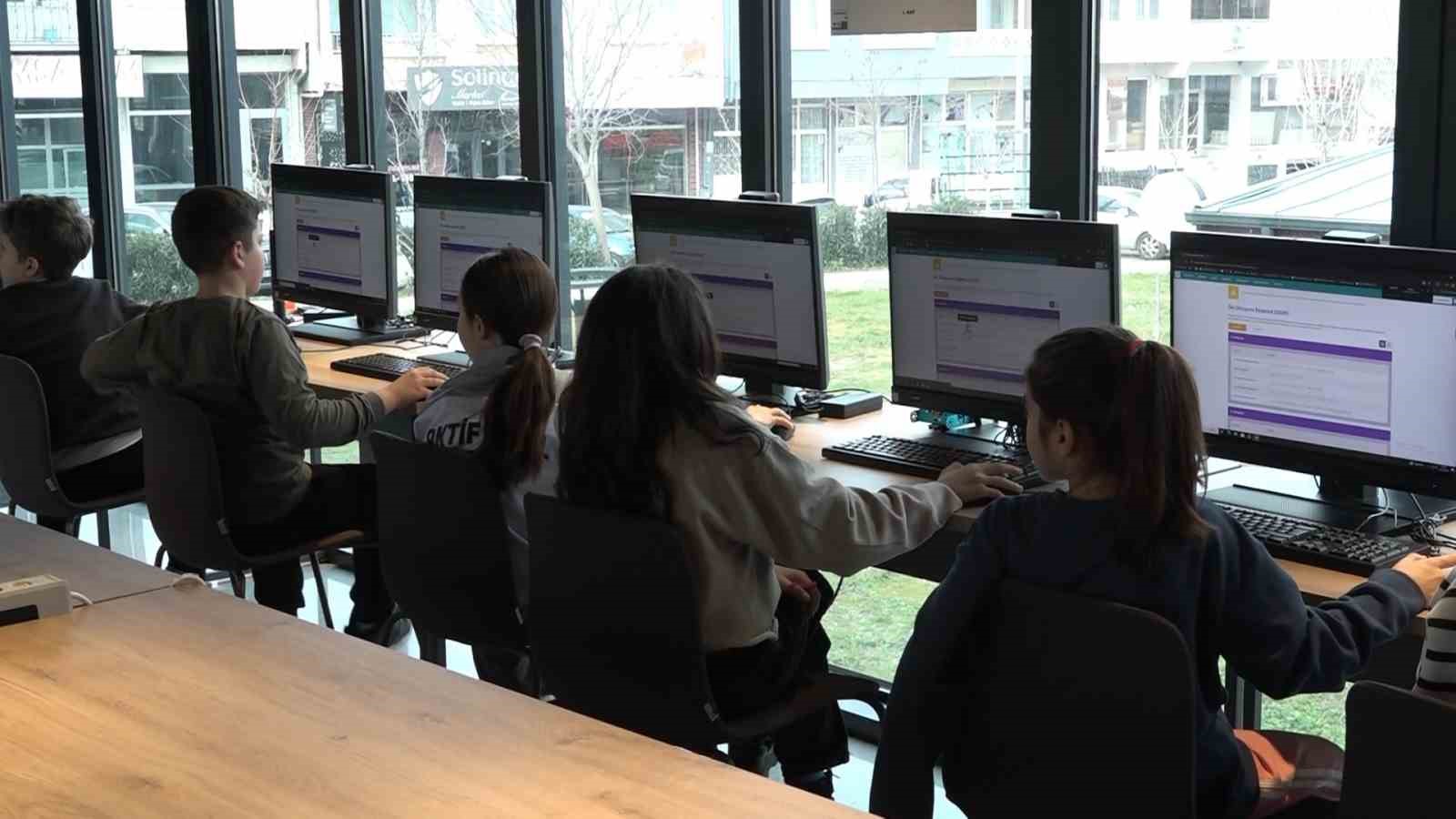 Kodlama atölyesinde ise kodlama dilini öğrenen öğrenciler, yazdıklarıyla neler yapabileceklerini gösterdi.