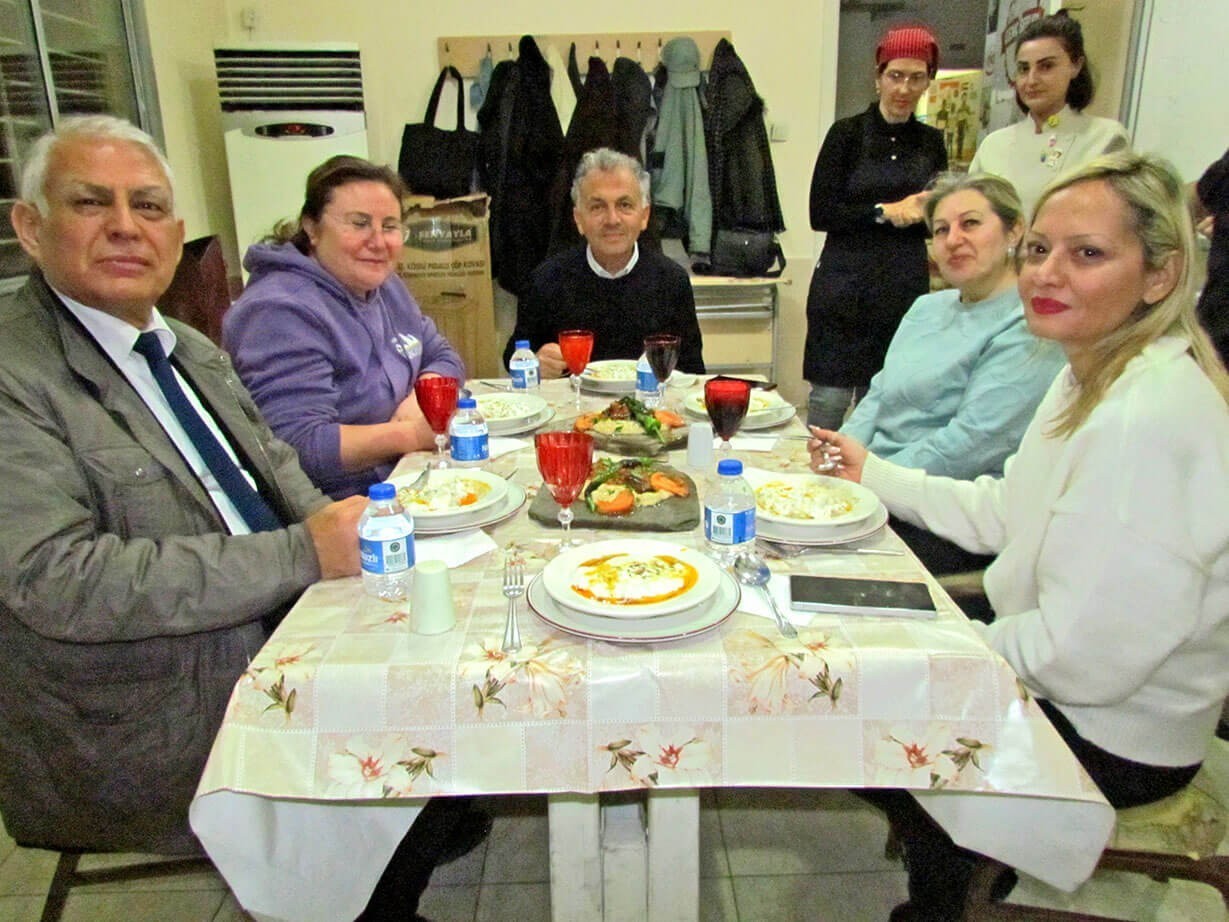Şef Serkan Özcan, Çeşme Halk Eğitim Merkezi Müdürü Ali Rıza Doğruyol, Çeşme Gümrük Müdürü Orhan Evintan ile eşlerini ve Çeşme İlçe Tarım ve Orman Müdürü Mine Altın’ı özel bir akşam yemeğinde ağırladı. Gecede konuklara Anadolu ve Ege mutfağını buluşturan özel bir menü sunuldu. Özcan, “Kayseri yöresine ait el açması mantı yaptık. Yanında Ege’nin özgün lezzetlerinden Efe Sarması vardı. Beğendi yatağı üzerinde, İzmir tulumu ve bonfileye sarılı tulum peyniriyle servis edilen yemek, Çeşme domatesiyle tamamlandı” dedi.