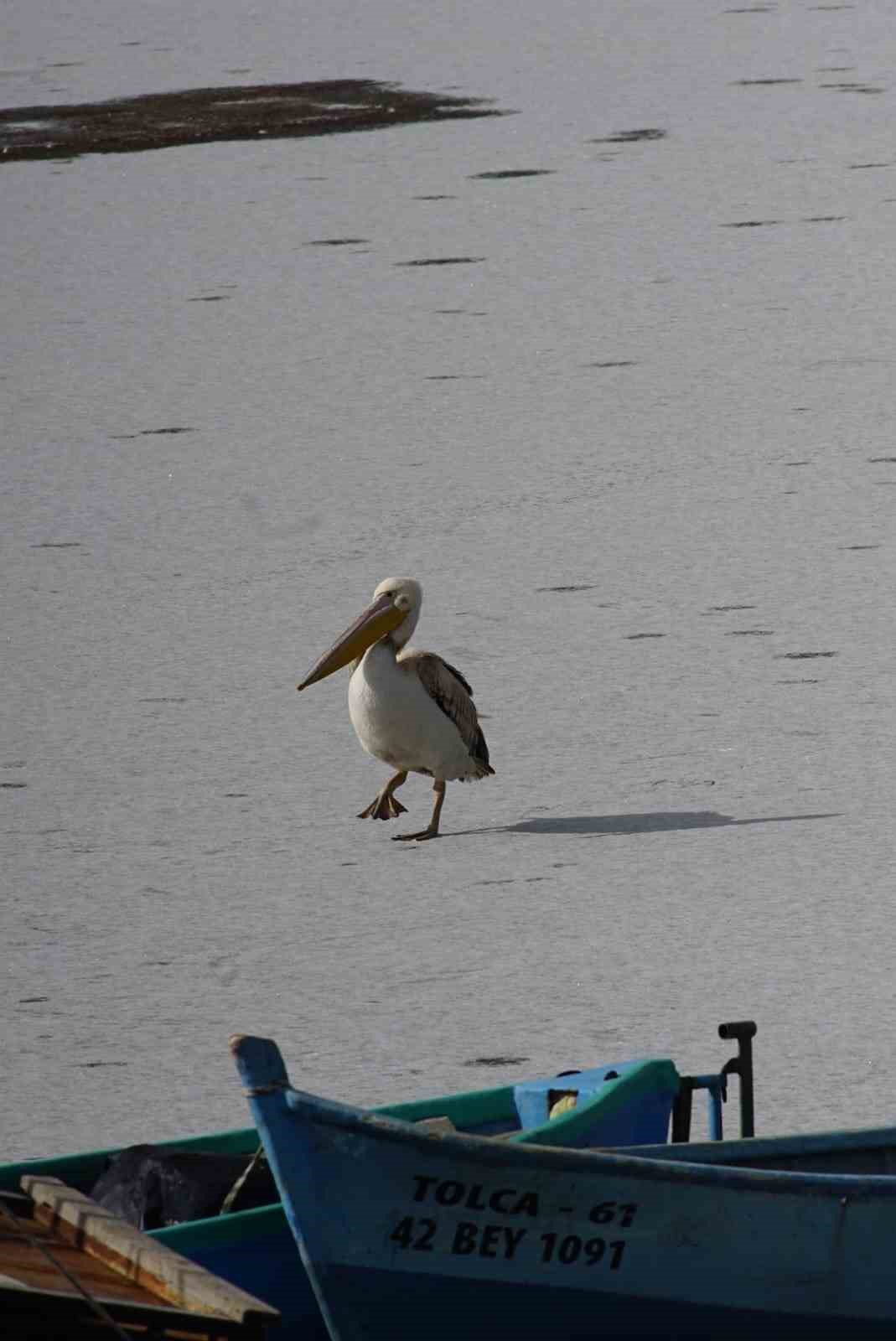 Dondurucu soğukların etkisiyle göl kıyılarının buzla kaplandığı Beyşehir’de, sahil kesiminde görülen pelikanlar vatandaşların ve fotoğraf tutkunlarının yoğun ilgisini çekti. Hava sıcaklıklarının sıfırın altına düşmesiyle göl kıyılarının yüzeyinin büyük bölümünün donması, alışılmışın dışında manzaraları da beraberinde getirdi. Kent merkezindeki sahil bölümünde görülen 3 pelikan, buzla kaplı yüzey üzerinde yiyecek ararken görüntülendi.
