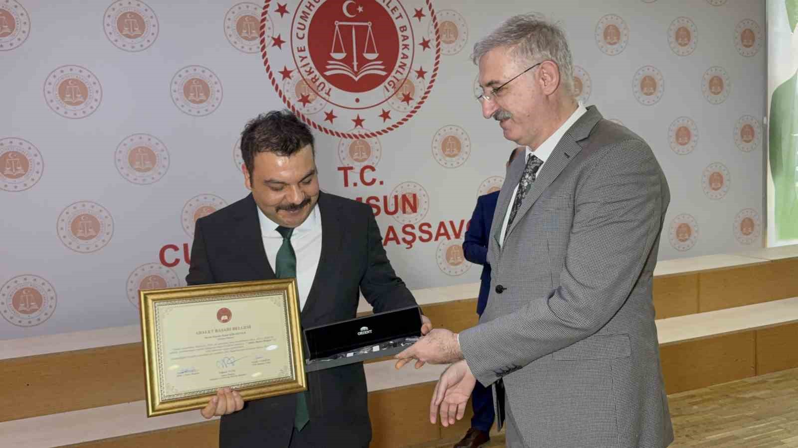 Samsun Adliyesi İsa Fidan Konferans Salonu’nda gerçekleştirilen törene hâkimler, savcılar ve adliye personeli katıldı. HSK tarafından yürütülen performans esaslı izleme ve değerlendirme sistemi kapsamında hukuk yönünden Asliye Ticaret Mahkemesi Başkanı Mehmet Ali Aykun, ceza yönünden ise 8. Asliye Ceza Mahkemesi Hâkimi Harun Raşit Dikmener ödüle layık görüldü. Törende Adalet Başarı Belgelerini Adalet Komisyonu Başkanı Nahit Köseoğlu takdim ederken, hediyeler Cumhuriyet Başsavcı Vekili Turgut Türkmen tarafından verildi.