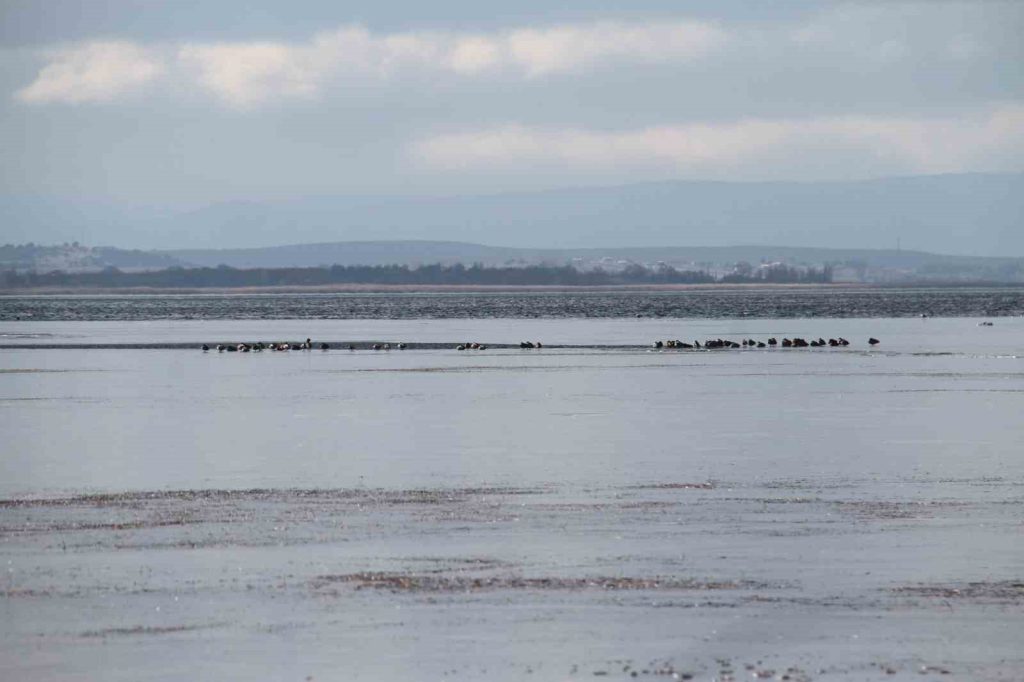Konya’nın Beyşehir ilçesinde kar yağışının etkisini kaybetmesi sonrasında gelen şiddetli soğuklar Beyşehir Gölü kıyılarının donarak buzlarla kaplanmasına neden oldu.