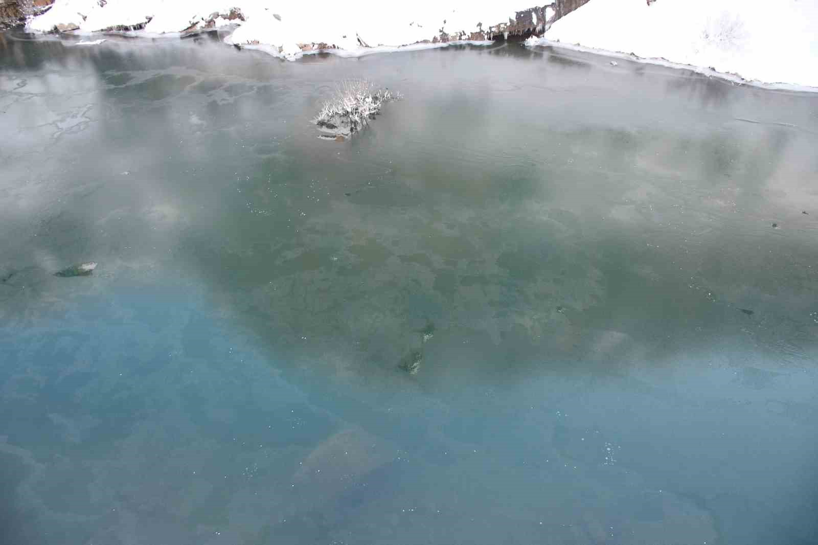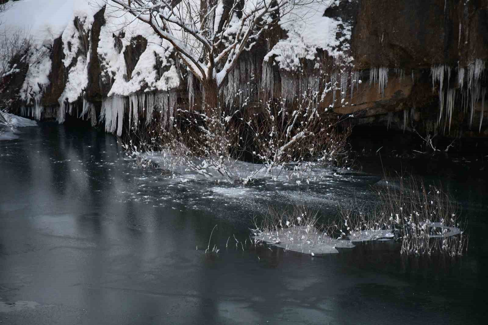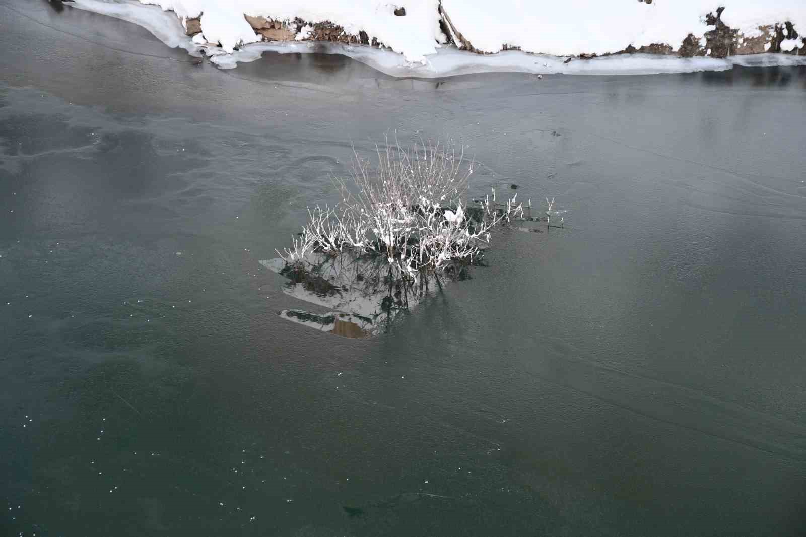 Şırnak’ta Habur Çayı’nın bir kısmı soğuk havanın etkisiyle dondu.