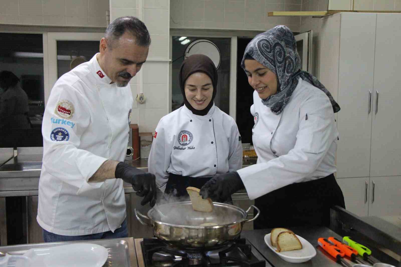 Lezzetiyle parmak ısırtan tatlının kısa sürede hazırlandığını belirten Amasya Toprak Kadın Girişimi Üretim ve İşletme Kooperatifi Başkanı Döndü Olgun, “Bu tatlının hikayesi genç kadının askere giden eşine duyduğu sevgiye dayanıyor. Bu tatlımız coğrafi işaretle tescillenmiş bir lezzetimiz. Çok ekonomik. Bayat ekmeklerin değerlendiriliyor. Geri dönüşümün en tatlı örneği bu tatlıdır” dedi.