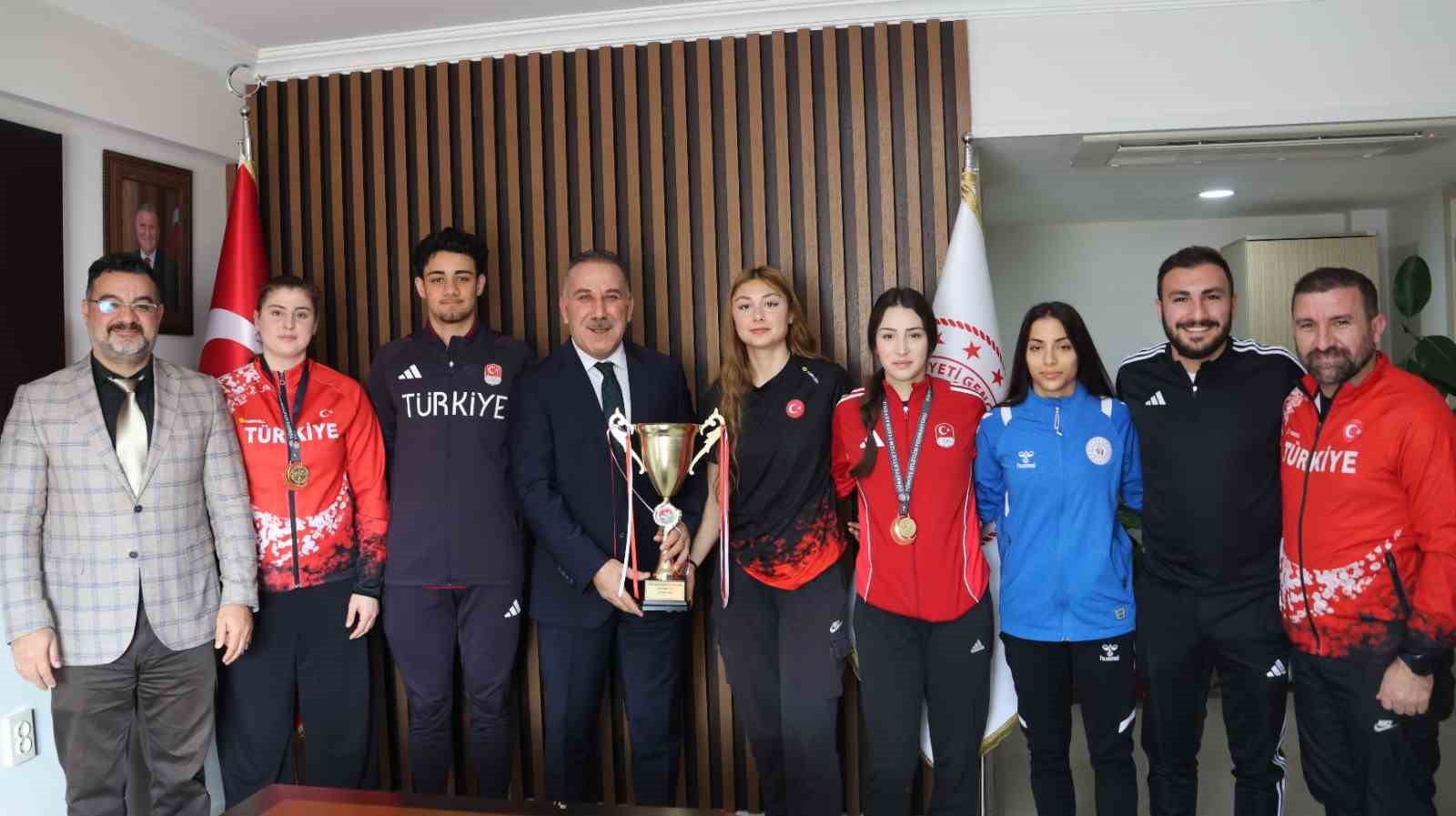 Şampiyonadan derecelerle dönen sporcular, antrenörleriyle birlikte Aydın Gençlik ve Spor İl Müdürü Serhat Yığmatepe’yi ziyaret etti. İl Müdürü Yığmatepe ise sporcuları elde ettikleri başarılardan dolayı tebrik ederek uluslararası şampiyonada başarılar diledi.