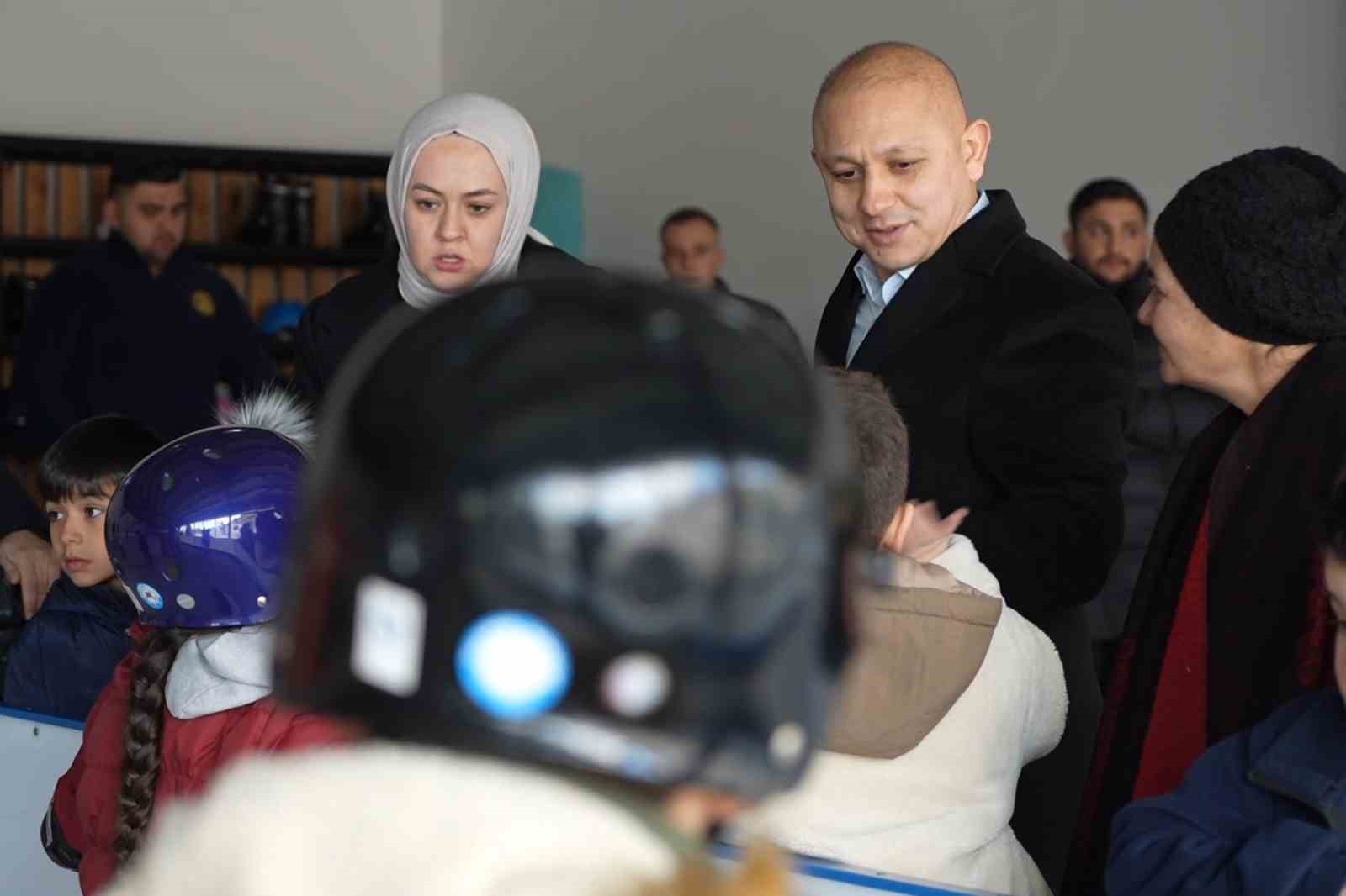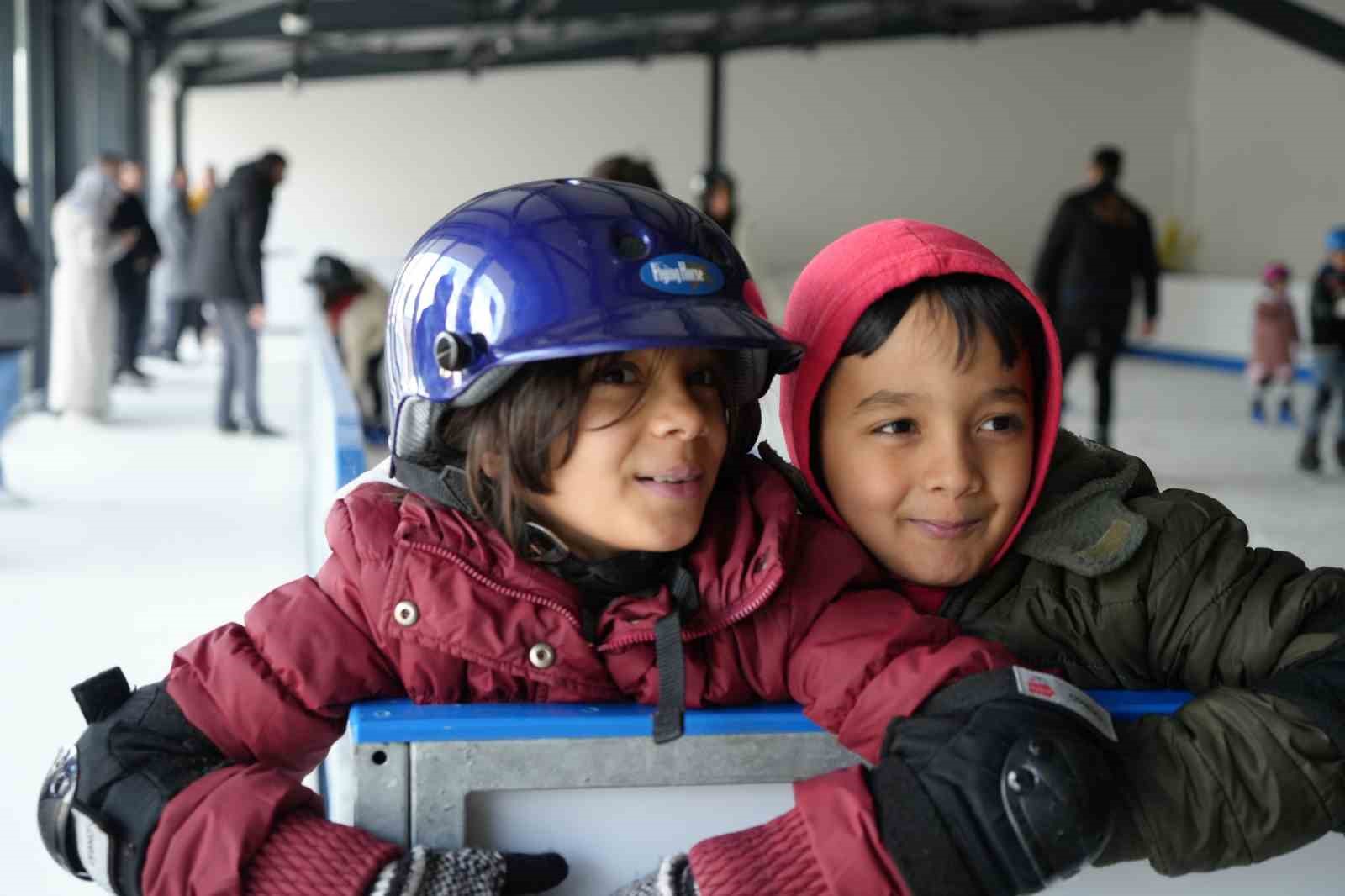 Kırıkkale’de karnesini getiren çocuklar, ücretsiz buz pistinde paten kaymanın keyfini yaşadı.