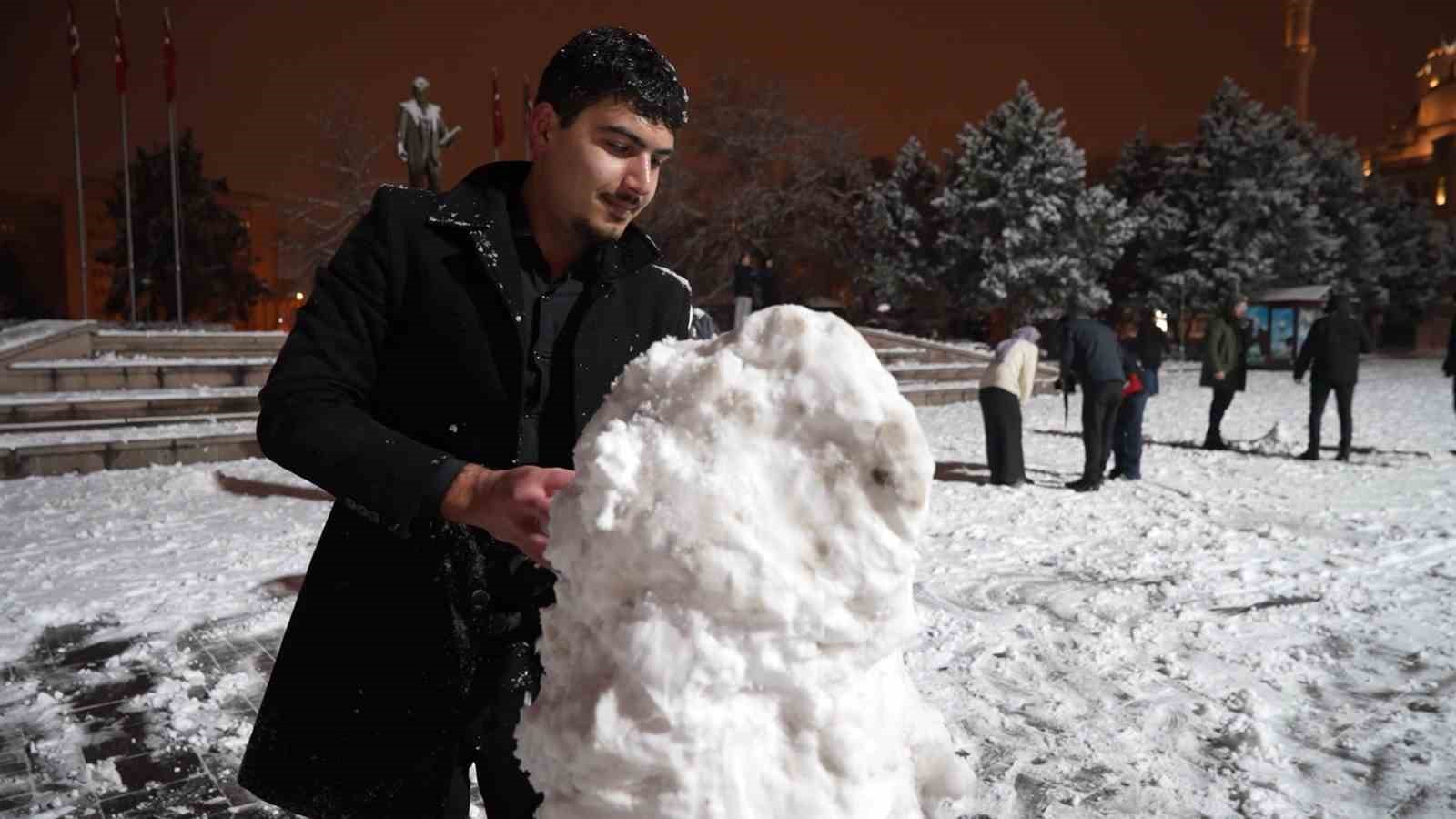 Kayra Kılınç ise, “Sınavdan çıktık, deneme çözüyorduk. Kar yağdığını görünce meydana gelip biraz oynayalım dedik. Eğleniyoruz, biraz soğuk ama gayet güzel” ifadelerini kullandı.