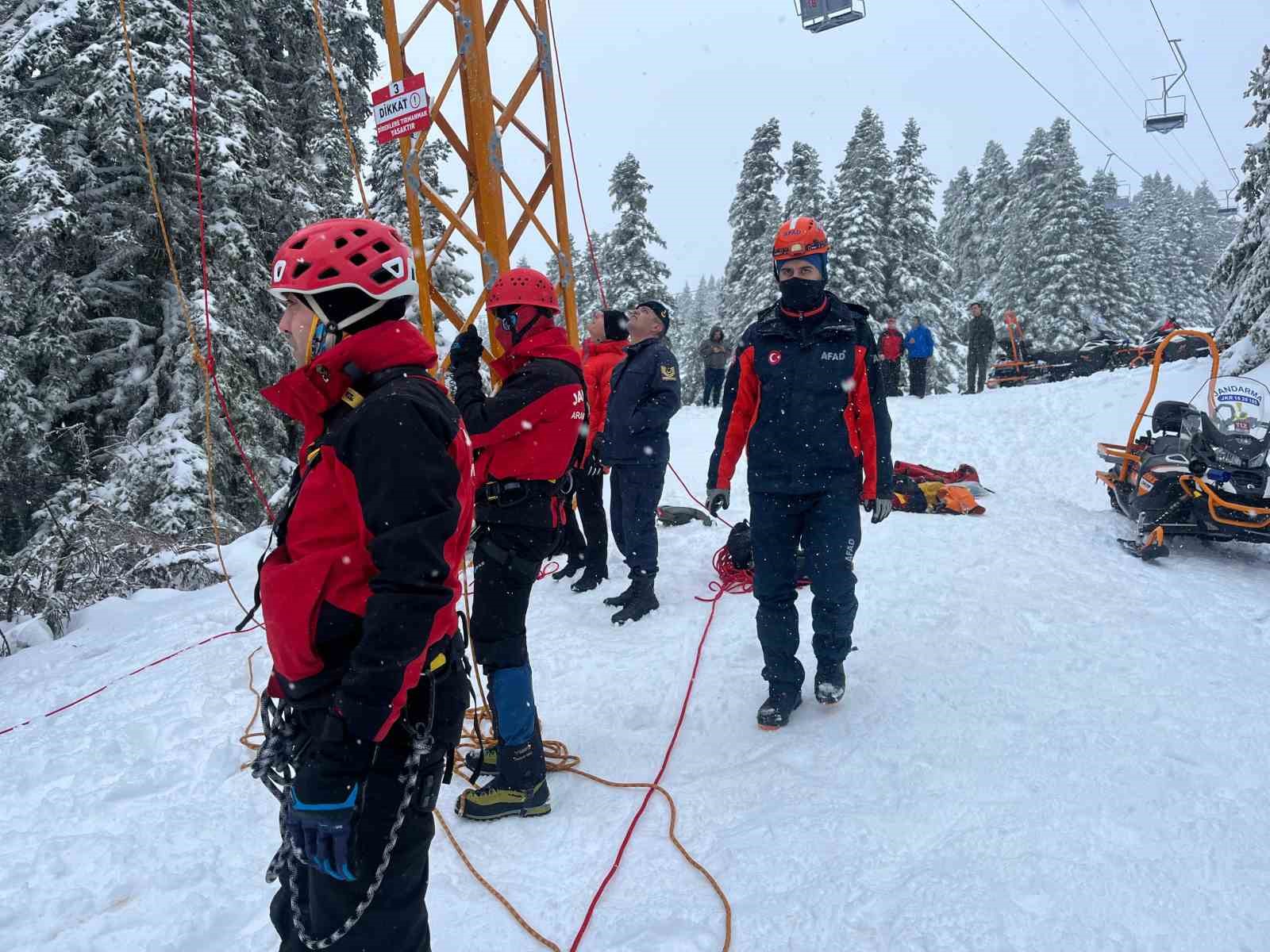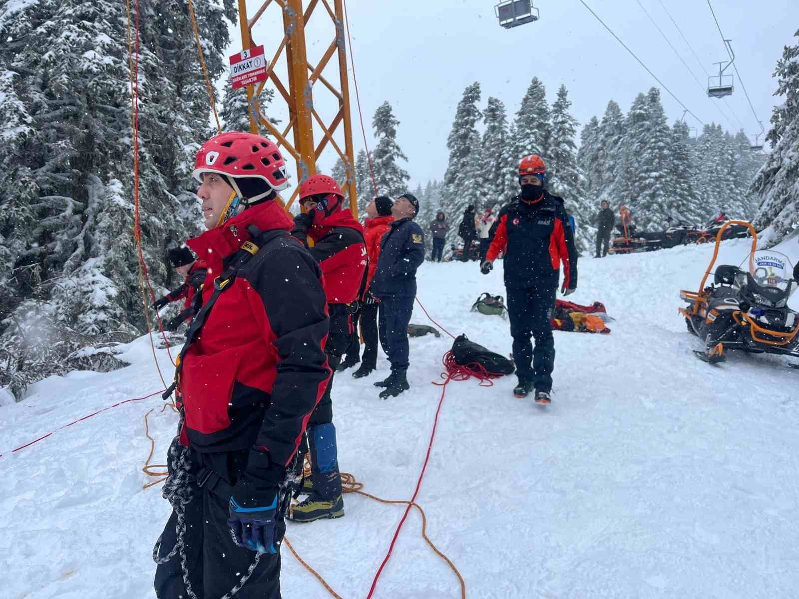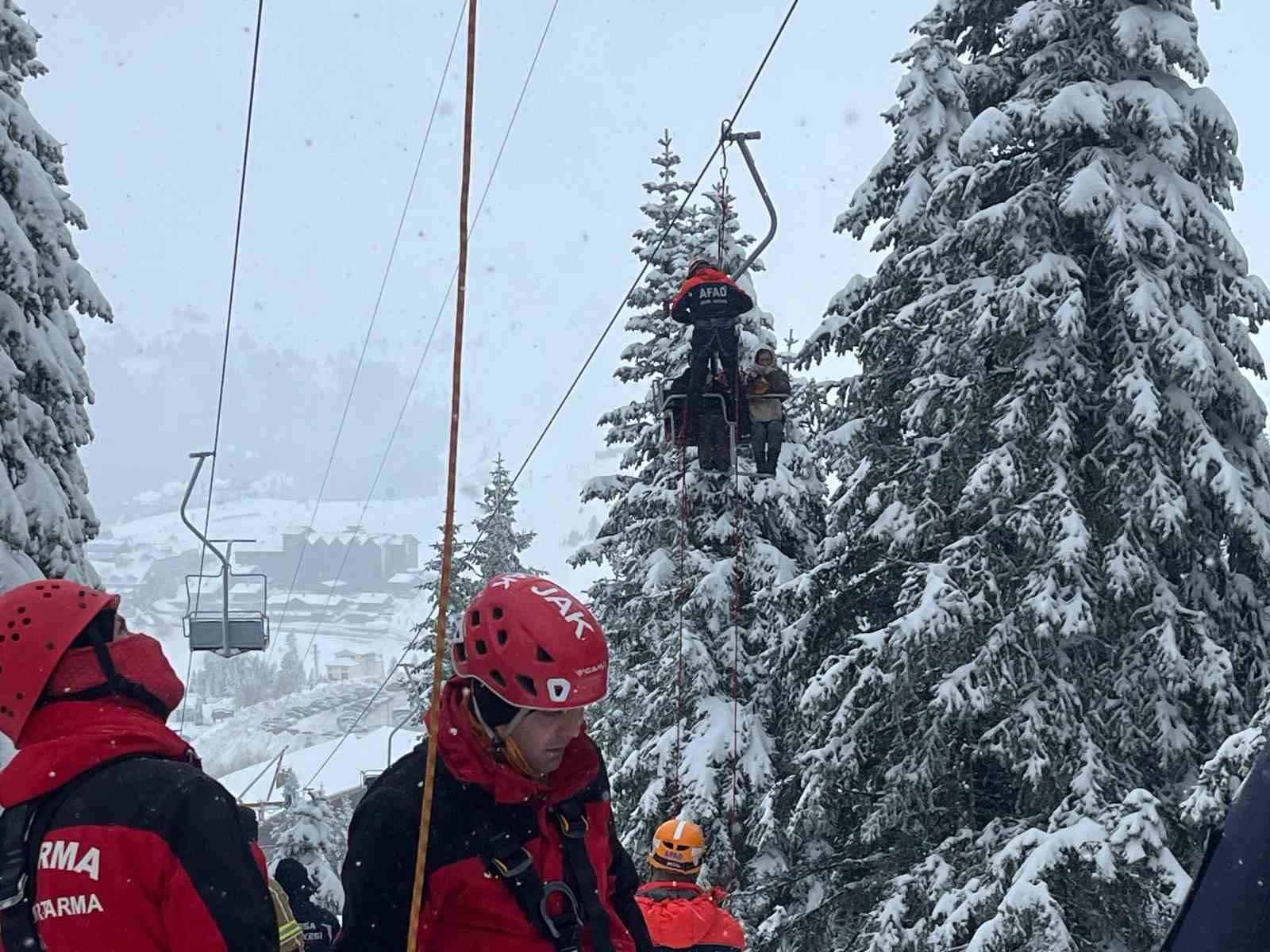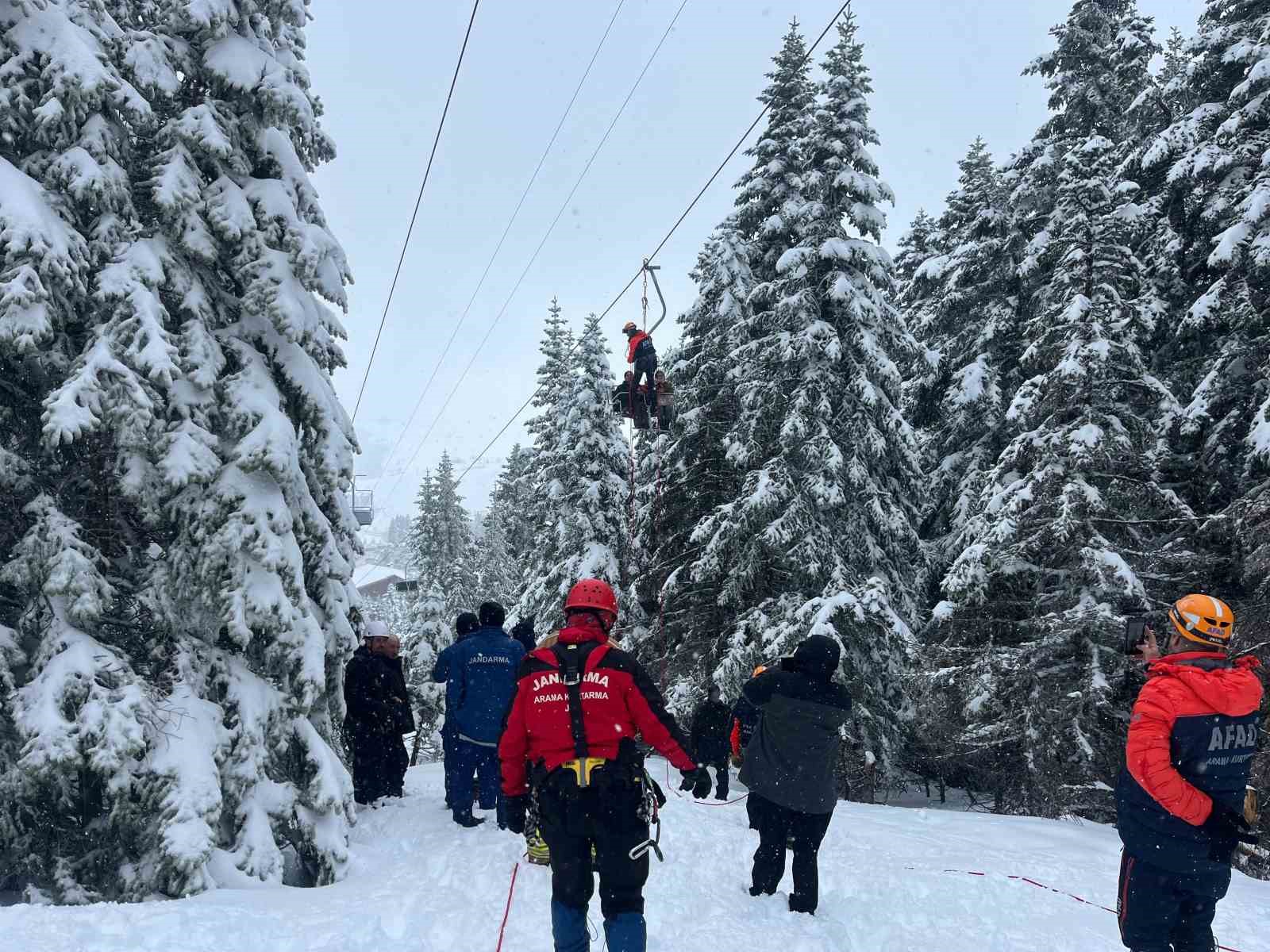 Edinilen bilgiye göre telesiyejin vites kutusunda yaşanan arıza sonucu kabinler hemen durduruldu. Kabinlerde bulunan kayakçı tatilciler tahliye edilemedi. Saat 10.30’da yaşanan olayın ardından Jandarma Arama Kurtarma (JAK), AFAD ve itfaiye ekipleri kısa sürede bölgeye sevk edilerek tahliye ve kurtarma çalışmalarına başladı. 52 tatilci halat yardımıyla ilk etapta yarım saat içerisinde indirildi. Kafeteryalar bölgesine yakın noktada 8 tatilciyi ise kurtarma çalışmasının sürdüğü belirtildi.