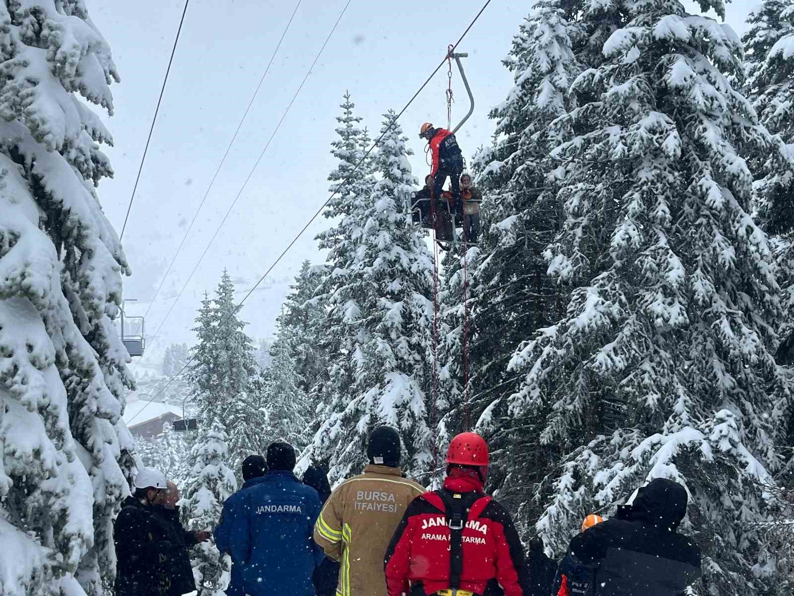 Kış turizminin merkezi Uludağ’daki Birinci Oteller Bölgesinde faaliyet gösteren Fahri Otel telesiyejinde meydana gelen teknik arıza nedeniyle yaklaşık 60 tatilci tellerde mahsur kaldı. Jandarma ve kurtarma ekipleri 52 tatilciyi kurtarırken, 8’ini kurtarma çalışmasının sürdüğü bildirildi. Çalışmalara JAK’ın yanısıra AFAD, ve Büyükşehir İtfaiye ekipleri de katılıyor.