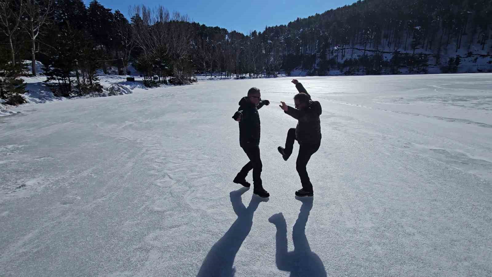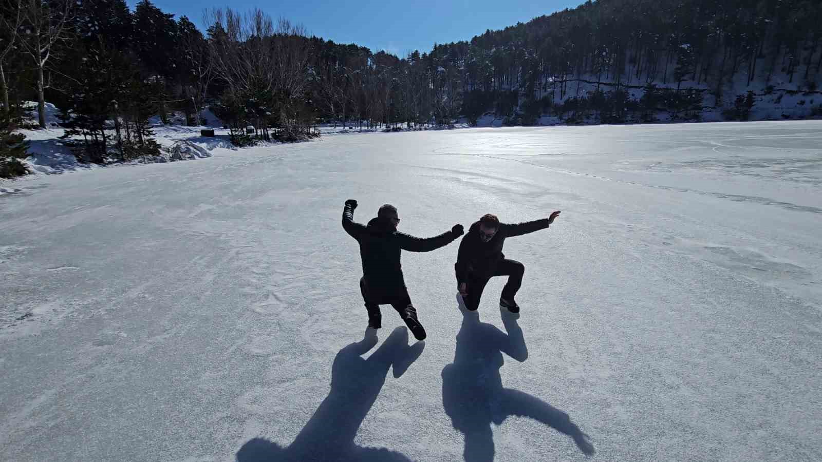 Bursa’nın doğa sporlarıyla özdeşleşen isimlerinden İsmet Şentürk, tam 6 yıldır kış aylarında Uludağ’ın buz tutan göllerine girerek herkesi şaşırtan bir geleneği sürdürüyor. Şentürk, bu yılda önce çökertme oynadığı gölün üzerini kaplayan kalın buz tabakasını kesip açtığı alandan buz gibi suya girdi.