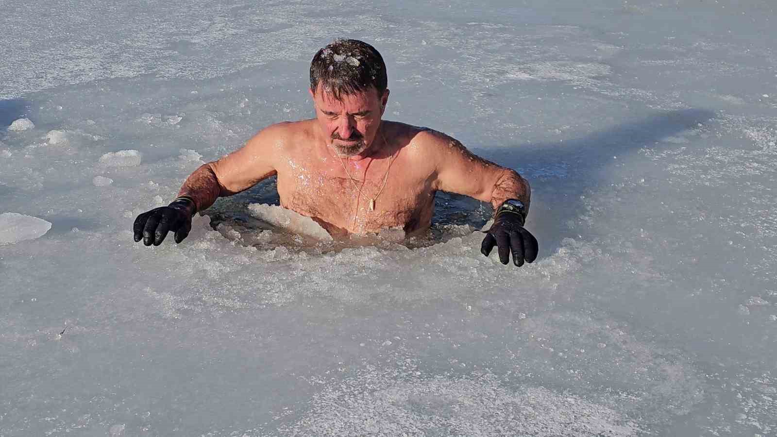 Bursalı dağcı İsmet Şentürk, 6 yıldır Uludağ’ın buz tutan göllerinde buz tabakasını keserek göle giriyor. Şentürk bu sıradışı alışkanlığıyla hem doğa tutkunlarının ilgisini çekiyor hem de sağlığa faydalı olduğunu savunuyor.