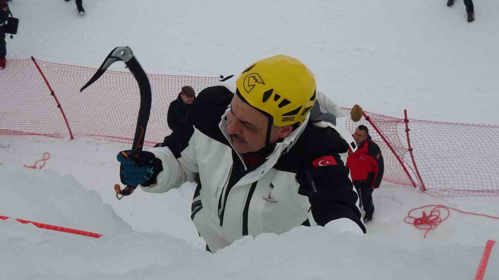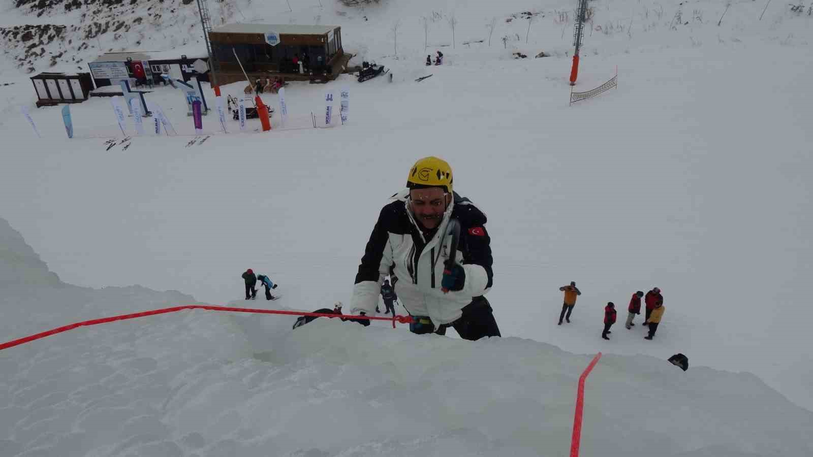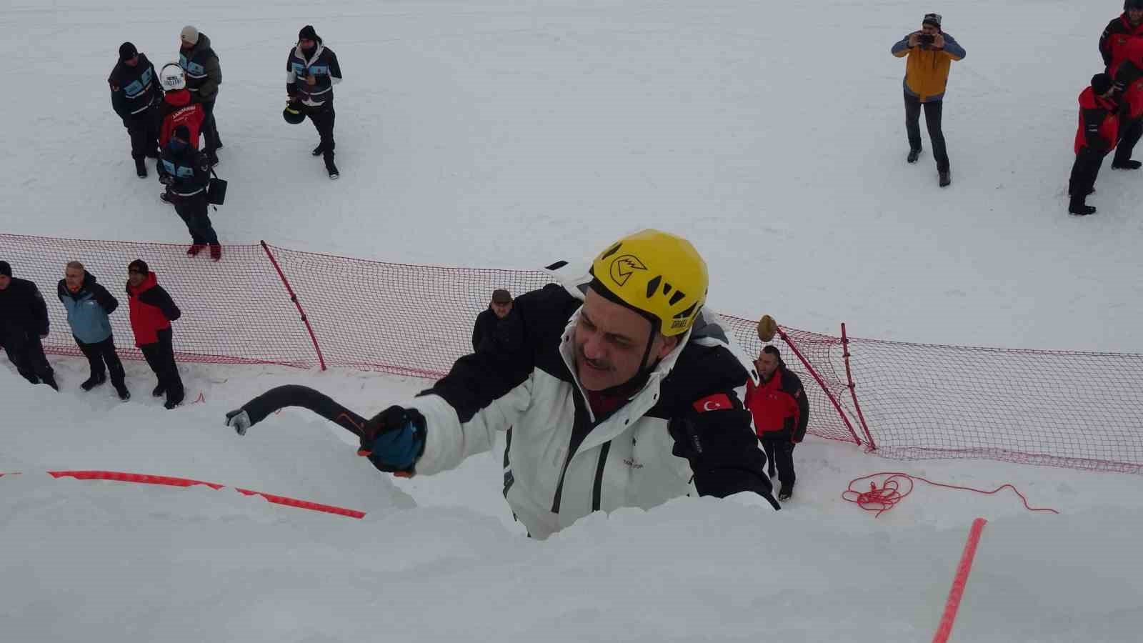 Erzurum Valisi Mustafa Çiftçi, Palandöken Kayak Merkezi’nde yapılan yapay buz duvarına tırmandı.