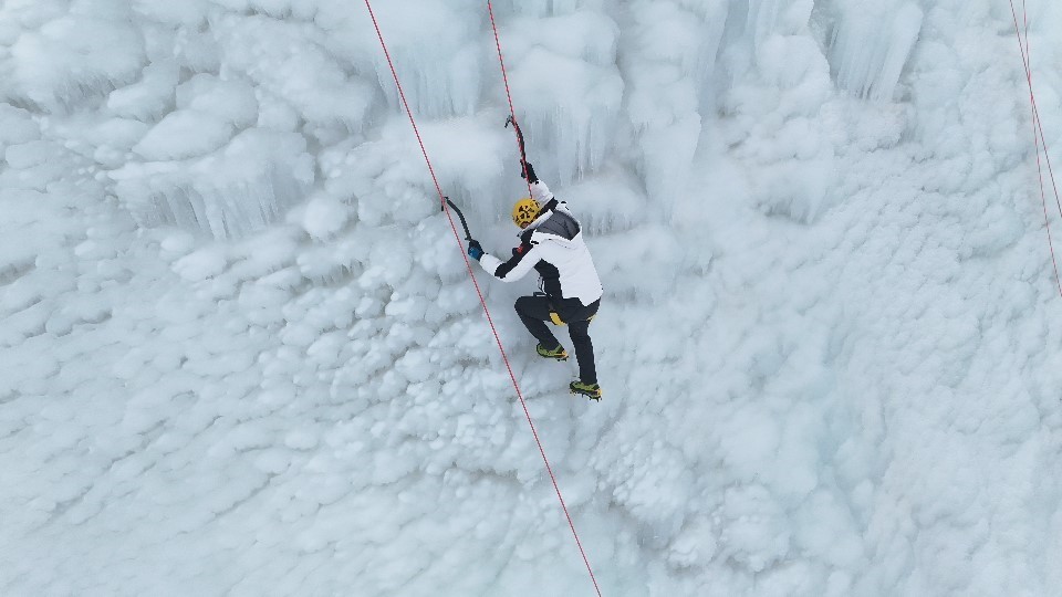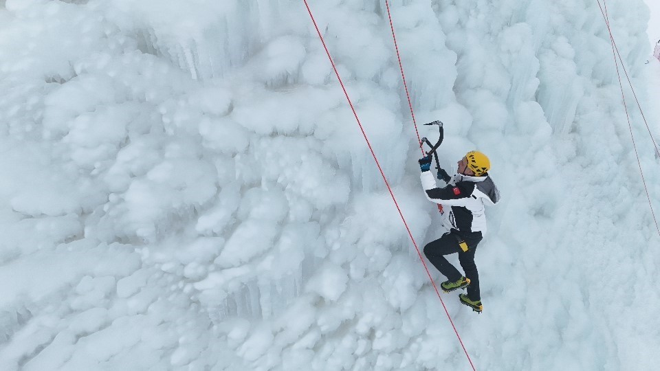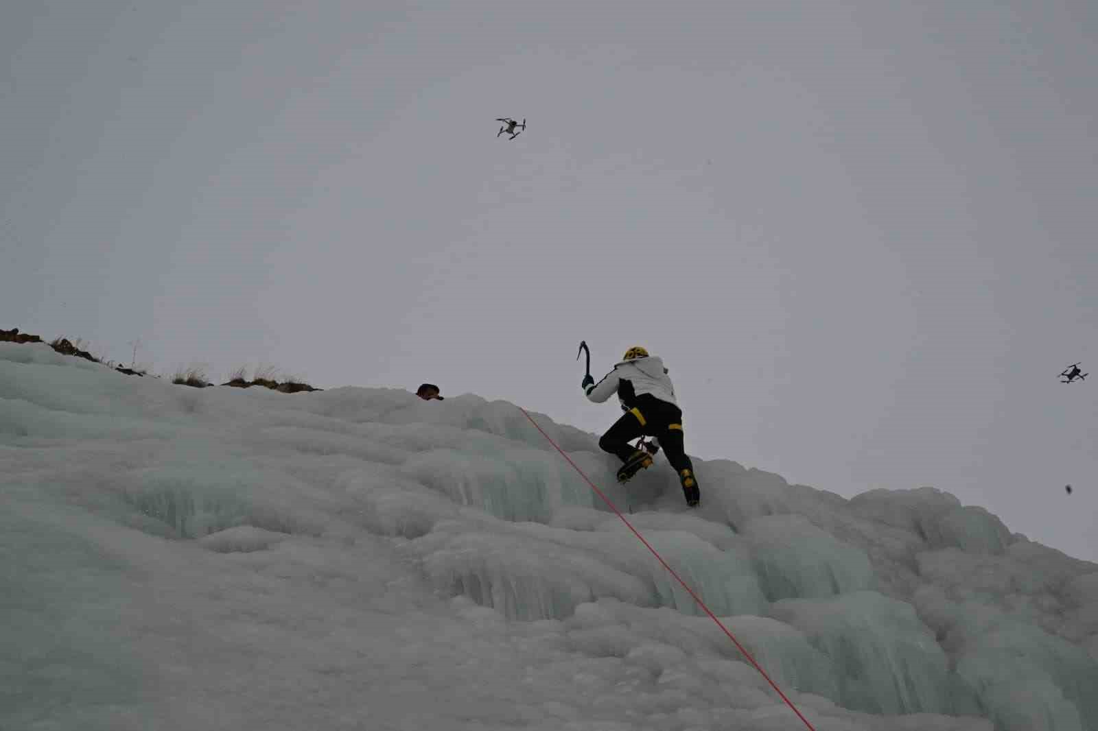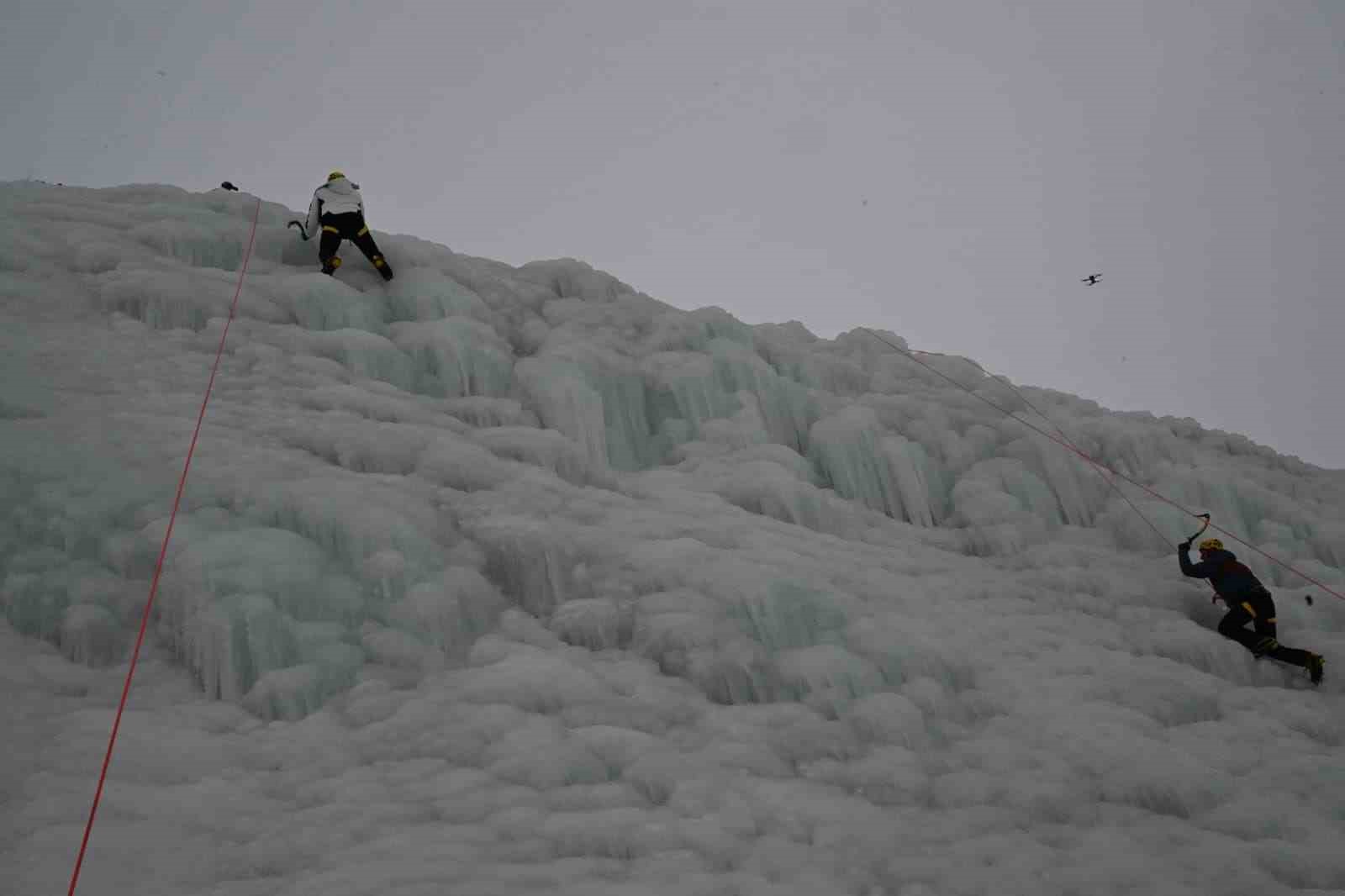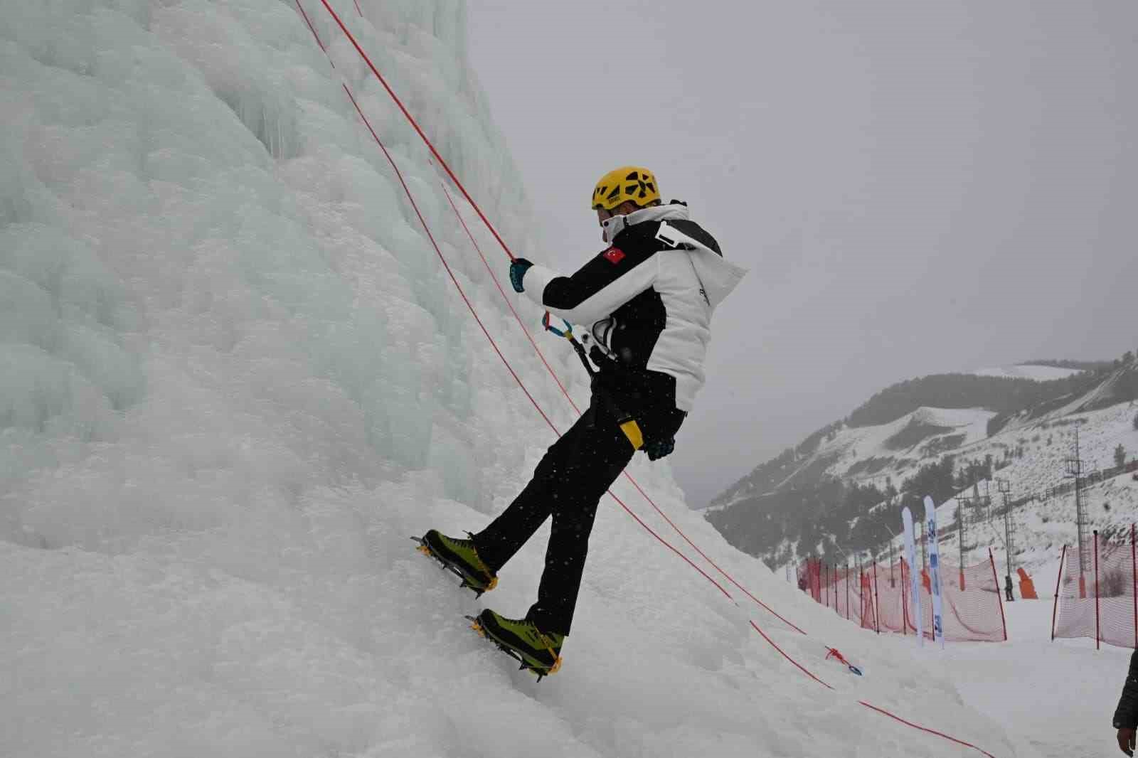 Erzurum Valisi Mustafa Çiftçi, Palandöken Kayak Merkezi’nde yapılan yapay buz duvarına tırmandı.