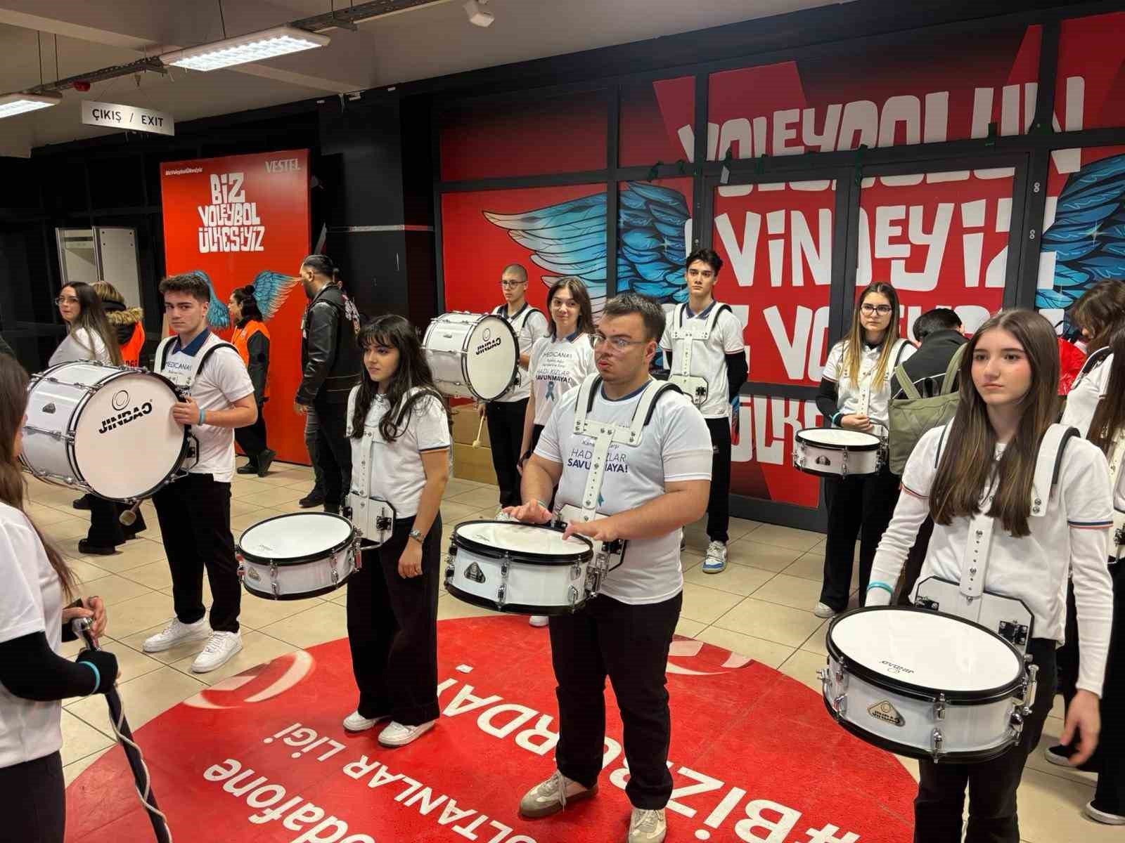 Kadın sporcuların sahadaki mücadelesiyle eş zamanlı olarak verilen bu mesajla, erken tanı ve korunmanın önemine dikkat çekilirken tribünlere gelen öğrenci bando takımı enerjik performansıyla salonu ayağa kaldırıp farkındalık mesajının büyük bir kitleye ulaşmasına katkı sağladı.